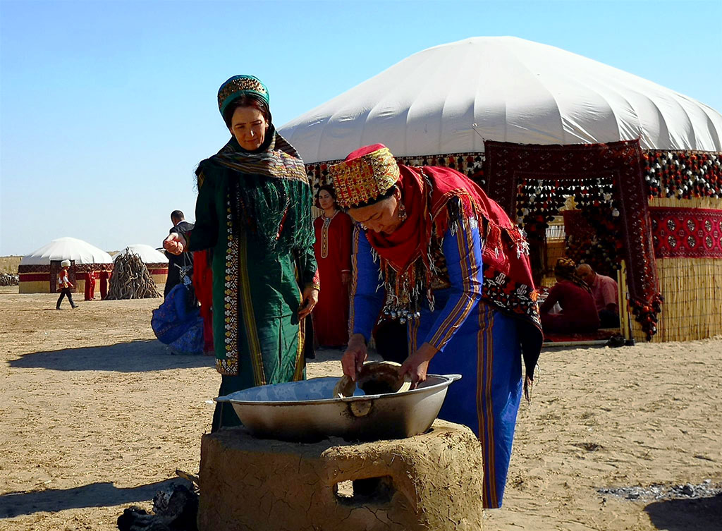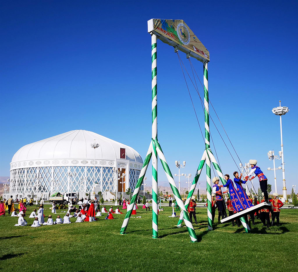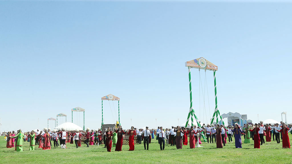 President Gurbanguly Berdimuhamedov gave Kurban Bayramy food donation in Nowruz Valley and took part in the events organized on occasion of this wonderful celebration, which were held near Ashgabat in Nowruz Valley with the building of the «Ak öý» built in the shape of huge yurta (traditional Turkmen tent). The Speaker of the Mejlis, deputy Chairmen of the Cabinet of Ministers, heads of military and law enforcement agencies, hyakims of Ashgabat and velayat have welcomed President Gurbanguly Berdimuhamedov. The President and other participants of the ceremony went to social event building looking around the panorama of celebration action in their way. Wonderful city from oriental fairy tale stretched out its premises there. Spacious meadow became huge stage for big celebration and Turkmen village reconstructed with all traditional attributes became its decoration. Its features are highlighted by craftsman workshops and colourful shopping tents with turbulent crowded activities around them as it was in oriental bazaars , which appeared along the trade routes connecting the cities and regions. This is loud Turkmen village riddled with bright ornaments and all colours where one can dive into incredible atmosphere of people’s life and feel its originality. Ancient melodies performed by bakhshy with emotional audience around them were beautiful background for this. Fights of wrestlers and joyful national games, for which there was special place on crowded square in old days, emerged in the distance. Smoke from the fire burning under cauldrons with the treats, which tantalizing smell spreads around everywhere, goes up the sky; ornamented table-cloth and tables are laid. Cooks, the experts in ancient recipes, demonstrated the cooking of national dishes and offered to taste it to the guests. Neatly decorated yurtas were placed around big show-white Ak öý like colourful round dance. Ancient traditions and rites, original crafts were revived there, handcrafts were demonstrated and scenes on folklore motifs were played. The President of Turkmenistan went to social events building where he gave traditional food donation on the first day of Kurban Bayramy. The Mufti of Turkmenistan, imams of the velayats and Ashgabat, honoured elders representing the capital and the regions, members of the Government and many other have gathered there. The Head of the State addressed to all participants before the food. Having noted that current events are held in Nowruz Yaylasy ground, the Head of Turkmenistan said that this valley has turned into the place where our ancient traditions have their triumph and where we widely celebrate our national holidays. The building of Ak öý has become the symbol and embodiment of national traditions, which reflects the beginning of the wellbeing of every family in our sovereign state. Various food is cooked on Kurban Bayramy and celebration table-cloths are laid widely. They bring together people around them who talk to each other and pray for common prosperity. Tal swings are installed in the cities and towns, happy celebrations are organized. The art masters create celebration atmosphere by their performances. All of these demonstrate the strength of our state and its prosperity, it unites and consolidates the nations, President Gurbanguly Berdimuhamedov noted. Kurban Bayramy is an integral part of Turkmen world. Our nations reflected its belief, traditions, rites and customs in the content of this ancient celebration. That is why it is so important in education of growing generation with patriotism, honesty, friendliness, loyalty, respect of the elders. We chose “Turkmenistan – the Heart of the Great Silk Road” as the slogan of 2018, President Gurbanguly Berdimuhamedov said. Restoring the Silk Road, we showed our country as the state of humanity and the most noble goals to the world. We support friendly relations with other states and pursue the policy of peace-loving and good neighbourliness. That is why peaceful way of development chosen by us find the approval and support abroad and international authority of our neutral state is steadily growing, the President highlighted. Having noted that preparation of the next anniversary of the country is carried out these days, the Head of the State said that the first session of the People’s Council would be held before the celebration in the capital. Having united and gathered together the representatives of all levels of the society in one place, the People’s Council would demonstrate again its integrity and solidarity and will show the wisdom of our ancient traditions and that the nation chooses its own destiny itself. After, the Head of the State asked the Mufti of Turkmenistan to say a prayer. After the pray, various dishes of national cuisine have been served. After the food, the Mufti has read celebration prayer. President Gurbanguly Berdimuhamedov congratulated again all participants on Kurban Bayramy. Having left the building, the Head of the State watched the celebrations around for a while. Every region has presented its own music and ethnographic performance, which included folk music performances and rites. The review of craftsmen works, national dishes cooked by special recipes inherent to certain regions have supplemented this celebration picture. *** Celebration concerts and events have been held in all administration centres of the country and Ashgabat.