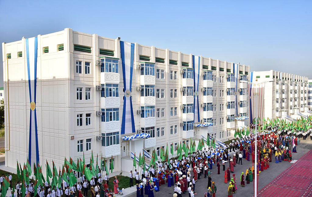 The citizens of the administrative center of Lebap velayat received a wonderful gift for the Independence Day of Turkmenistan. The opening ceremony of four four-storey houses with 24 four- and three-room apartments each took place there. The most advanced technological structures and finishing materials were used during the construction. Comfortable large-panel houses, designed by local experts, taking into account the requirements of modern domestic urban development, have adorned the architectural look of A.Niyazov Street. Turkmenabat building construction plant of the Ministry of Industry of Turkmenistan and Demirbetononumleri enterprise took part in the construction project supplying panels and other building materials. All necessary conditions for the comfort of residents are created in the houses of the new residential complex. Spacious light rooms with high ceilings, a well-equipped kitchen and an entrance hall create a cozy atmosphere. There are a large playground and special place designed for 300 places to host weddings and ritual events on the adjacent territory. The festively decorated complex greeted new settlers with musical and choreographic performances. The opening ceremony brought together the representatives of the Lebap Velayat and Turkmenabat administration, public organizations as well as the elders and youth. Valuable gifts were awarded to the best construction workers during the ceremony.