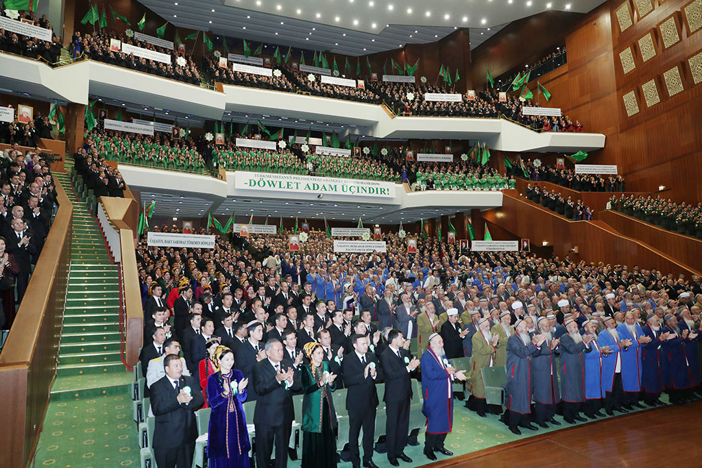 The first session of the People’s Council chaired by President Gurbanguly Berdimuhamedov was held in the capital on the threshold of the 27th anniversary of independence. The agenda of National forum, which is remarkable event in life of the country, included the discussion of priority objectives of further development of Turkmen state and society. Being the highest representative authority acting accordingly to the Constitution of Turkmenistan based on universal democratic principles and rich historical practice of the nation, in new epoch, the People’s Council embodies unbreakable tie of times and generations, commitment of our independent neutral state to primordial traditions of true people’s power, to the way of peace and creation. In the morning, the President of Turkmenistan went to the Ruhiyet Palace from Oguzkhan Presidential Palace Complex. The participants welcomed President of Turkmenistan Gurbanguly Berdimuhamedov on their feet with loud long-lasting applauses. The head of the State went to the stage and warmly greeted numerous participants and guests of the forum, which is bright evidence of steadfast development of democratic processes in modern Turkmen society. Addressing the participants, the Head of the State noted that as is known, the initiative about the establishment of representative people’ power authority – the Halk Maslahaty of Turkmenistan, has been proposed and unanimously approved at the session of the Council of elders held last year in Ahal velayat. Deputies of the Mejlis have discussed and adopted relative Constitutional Law. Today, we have gathered for the first meeting of the People’s Council in order to discuss the most important subjects of the state and society life, President Gurbanguly Berdimuhamedov said. Elected members of the People’s Council, heads of the government authorities, political parties and public organizations, deputies of the Mejlis, hyakims of the velayats, etraps and cities, ambassadors of our country to foreign states, honoured elders, representatives of all layers of the population as well as invited guests take part in current session, the Head of the State continued. The culmination came and President of Turkmenistan, chairman of the People’s Council Gurbanguly Berdimuhamedov announced the opening of the first session of the People’s Council. National anthem of Turkmenistan was played. After the anthem song, having noted that the participants have already had an opportunity to study the agenda, the President expressed the interest if there are any proposals or remarks on the subjects and documents to be discussed. With unanimous support of the participants of the forum, the Head of the State announced about the adoption of the agenda of the session of the People’s Council. After, the President of Turkmenistan made a big programme speech, which has been listened with great attention and met with long-lasting applauses. After, the Head of the State suggested starting the discussion of the subjects of the agenda of national forum, having given the floor to the participants. Tenant of Oraz Salyr Farming Association from Serkhas etrap of Ahal velayat Byashim Aydiyev, who was the first too speak, congratulated the President on coming 27th anniversary of the country. It was highlighted that today, fundamental changes are taken in all branches of national economy including in agriculture, big progress is achieved in all directions. This session of the People’s Council will be written with golden letters to the chronicle of the country as it reviews the reforms in agricultural complex taking into account future perspective. In his speech, the President of Turkmenistan has also outlined coming objectives, made number of proposals aimed at the wealth of people together with summing up of the outcomes of completed work. We are confident that new success would be achieved after completion of these targets, the speaker said. Turkmenistan has all opportunities for integrated development of agriculture, introduction of latest scientific developments, cultivation of various agricultural crops according to soil and climate conditions, use of land and water resources. It cause further improvement of social and living conditions of rural population. Opening of the new farms, joint stock ventures and private companies gives wide opportunities for reformation of the agricultural production and producing good yields. In this context, B. Aydiyev on behalf of all farmers expressed the support of the proposal of the Head of the State on the foundation of special land agricultural fund for further improvement of efficiency of the industry with regards to transfer to market relations and on stimulation of agricultural producers as well as on leasing of the land plots from this fund for 99 years. It was also highlighted that food abundance has been reached in the country and Turkmenistan has joined the number of grain exporting countries. Grain and cotton production is on high demand at foreign markets, which plays important role in development of national economy. After, the floor was given to the Senior Specialist of the Institute of strategic and Sustainable Development of the Ministry of Finances and Economy Ayan Achylova. The spokesperson said that national economy has reached high levels. Our country keeps leading positions among the states of the world by the GDP growth rates. Successful realization of social programmes, steadfast increment of the income of the population, salary wages, pensions, students scholarships, government allowances, creation of thousands new working places indicate significant improvement of social and living conditions of life of people and practical fulfilment of the SDGs. About 80 percent of the State budget is allocated for social sphere, which guarantees the provision of wealth of Turkmen citizens. The Head of Turkmenistan carries out fundamental work for diversification of national economy, trans