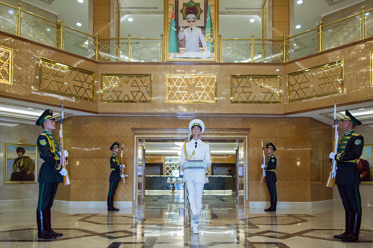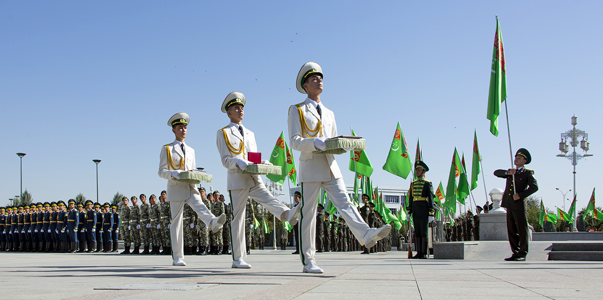 Central Officer Club of the Ministry of Defence hosted the event on occasion of handover of the Medal of Honour awarded to Berdimuhamed Annayev, the grandfather of President of Turkmenistan Gurbanguly Berdimuhamedov, to specialized military school no. 1 named after Berdimuhamed Annayev. As is known on September 24, the Head of the State received Ambassador Extraordinary and Plenipotentiary of the Russian Federation Alexander Blokhin who handed over to Turkmen leader the Medal of Honour, which was awarded to Berdimuhamed Annayev by the Decree of President of the Russian Federation Vladimir Putin. Having expressed the gratitude on behalf of Turkmen people and personally to President of the Russia Federation V. Putin, Turkmen leader noted that high state award conferred to Berdimuhamedov Annayev symbolizes the respect of our compatriots, brave warriors, who fought in the battles of the Second World War. Handing over the award to the Ministry of Defence, President Gurbanguly Berdimuhamedov highlighted that the Medal of Honour would inspire young soldiers for great success. Early in the morning, heads and personnel of military and law enforcemtn agencies, lecturers and cadets of military academies, students of specialized schools, military attaches of diplomatic missions accredited in our country, mass media representatives gathered in the hall of the Central Officer Club. After, the master of the ceremony addressed the participants with greeting speech. He mentioned in his speech that big work for protection and further strengthening of the sovereignty is carried out under the leadership of the President, Supreme Commander of the Armed Forces of the country, Army General Gurbanguly Berdimuhamedov. The country steadily implements integrated programme for provision of defensive capacity of the country, modernization of equipment and facilities base of military and law enforcement agencies, training qualified personnel. History of Turkmen nation knows many examples of courage and brave of glorious sons of the Motherland. Berdimuhamedov Annayev, the grandfather of the President of Turkmenistan, is one of them. Teacher and warrior, patriot of home land, he fought selflessly in the fronts of the Great Patriotic War. Today, his life serves as an example of patriotism and faith to the duty for young generation of Turkmenistan citizens, - it was mentioned in the greeting speech. National anthem of Turkmenistan was played and the Medal of Honour, documents from military archives of Russia regarding the service of Berdimuhamed Annayev as well as the Decree of the President of the Russian Federation on military award were solemnly brought out to the stage. The native of ancient Yzgant village, of Gyoktepe etrap, village teacher Berdimuhamed Annayev devoted himself to noble education of young generation. Being the first to go to the front, he came back from war with heavy wound but continued his noble mission to teach and educate young generation, having left good memory among his compatriots. The work of the teacher was not only profession for B. Annayev but also his duty and mission. Promoter of literature and folklore heritage of the nation, supporter of its centuries old culture, he was bearing it to the nation as educator, the participants of the event highlighted. Military attaché of the Embassy of the Russian Federation to Turkmenistan informed that according to the order of the Minister of Defence of the Russian Federation relevant information about the combat service of Berdimuhamed Annayev has been collected. The event in the Central Officer Club was continued by the concert with the participation of military art bands. Having received the medal of the grandfather of the President of Turkmenistan as well as the documents of his service in solemn atmosphere, young cadets and the participants of the event went to specialized military school no. 1 named after Berdimuhamed Annayev. The soldiers lined up along the way of the procession forming live corridor. The students of the school received the relicts in the hall in front of the monument of Berdimuhamed Annayev and organized the post of the guard of honour. The participants of the event paid tribute to light memory of the grandfather of the President of Turkmenistan Gurbanguly Berdimuhamedov.