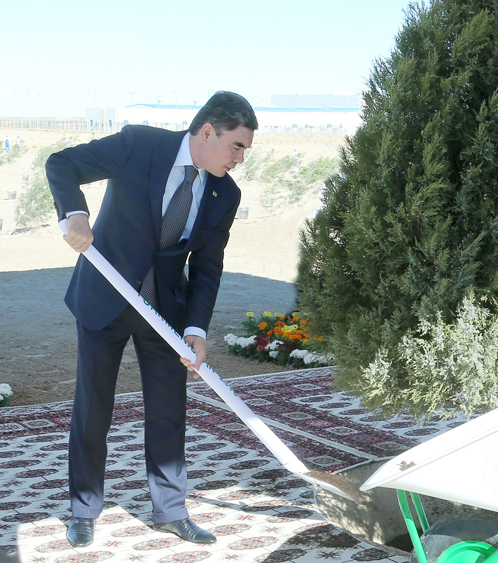 President Gurbanguly Berdimuhamedov attended the opening ceremony of the Kiyanly Polymer Plant whose commissioning created approximately 1000 jobs, and then launched the autumn tree planting campaign by planting the first tree beside the territory of the new gas chemical complex. The attendees joined the head of state’s initiative. Representatives of nearly every branch of the national economy, diplomats accredited to Turkmenistan and foreign guests took part in the tree planting campaign. Careful attitude towards mother nature is the highest priority of Turkmenistan’s state policy. Green arteries of forests stretch along highways and railways, while green oases emerge around the dynamically developing industrial infrastructure, the rapidly growing towns and new settlements. Millions of trees were planted on the foothills of the Kopetdag Mountains that lie side by side with the white marble-cladded city of Ashgabat. Particular attention is devoted to the emerald attire of Avaza National Tourist Zone. This investment project of major socio-economic importance, unprecedented in scale, has become an innovative model of integrated development of the regions. Kick-starting the rapid development of the tourist industry, the Avaza Project embraced several factors that influence Turkmenistan’s prosperity: the integrated use of the richest natural resources; recreational opportunities; the country’s advantageous location in terms of transit and transport and the ensuing diversification of the national economy. Currently, according to the domestic specialists’ estimation and reputable international experts’ opinion, the Turkmen sector of the Caspian Sea is considered to be the most environmentally sustainable due to the focused works in this area. Environmentally friendly advanced technologies provide a framework for the urban development, the oil and gas sector, the chemical industry, the electric power industry and the agriculture. They also serve as essential criteria of the socio-economic programs, major international and regional projects deployed in the country. The Turkmenbashi Complex of Oil Refineries, the flagship plant of the domestic petrochemical industry, is a concrete example of that. It is being modernized and technically re-equipped with the use of cutting-edge technology and technical solutions that help prevent technogenic damage to the environment. The project for the construction of the International Sea Port in the city of Turkmenbashi, which was commissioned this May, was designed in accordance with the Green port international standard. To preserve the environment of the Caspian Sea, every terminal was provided with the bio-purifying equipment. It is remarkable that the soil extracted at the construction of the port was used to create an artificial island with the total area of 170 hectares in the gulf waters. It became a living, nesting and wintering ground for flamingoes, swans, geese, ducks, herons, pelicans and other birds. Innovative technology is used in production of mineral fertilizers at the Garabogazkarbamid plant that became a valuable addition to the infrastructure of the country’s chemical industry in September. The environmental safety of this enterprise was confirmed by certificates from the reputable international organizations. The new stage in implementing the National Forest Program was marked with the Resolution by the head of state, Gurbanguly Berdimuhamedov, under which 3 million trees will be planted during the 2018 tree planting campaign. 1.5 million will be planted on the land between the districts of Ak Bugday and Baherden (Ahal province), and the same number of leafy, coniferous, fruit trees and vines will be planted on the outskirts of administrative centers of the provinces and in the cities. More than 445 thousand trees were planted in the country’s forest parks this spring.