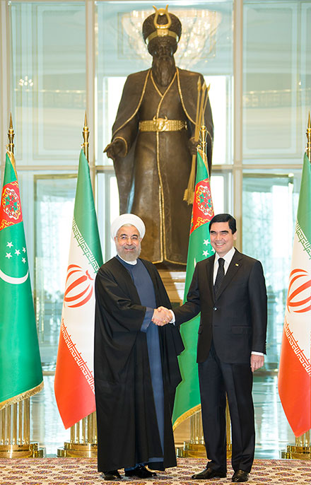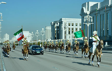 On March 11, the Turkmen capital hosted the talks between President of Turkmenistan Gurbanguly Berdymuhamedov and President of the Islamic Republic of Iran Hassan Rouhani, who had arrived in our country on a state visit the day before. In the morning, the automobile of the high guest accompanied by the mounted escort of honor headed towards the “Oguzkhan” Presidential Palace Complex. The President of Turkmenistan warmly welcomed the President of the Islamic Republic of Iran at the main entrance of the Palace. After an official arrival ceremony, President Gurbanguly Berdymuhamedov invited his Iranian counterpart to proceed to the Hall of Bilateral Meetings to hold the talks in the one-to-one format. As the leader of nation noted, this year’s February marked the 23rd anniversary of the establishment of diplomatic relations between Turkmenistan and the Islamic Republic of Iran. As the head of state said, the trade and economic relations between our countries are actively developing; efficient cooperation has been established in the fields of oil and gas, transport and communications, water economy, electric power, and some others. In this connection, the President of Turkmenistan stressed a significant role of the Joint Intergovernmental Turkmen-Iranian Commission for Economic Cooperation. At the same time, the nation’s leader highlighted a high level of humanitarian contacts between the two countries, having cited as an example Culture Days of the Islamic Republic of Iran, recently held in Turkmenistan, as well as the extensive joint work ongoing in the fields of science and education, sports and tourism. Appreciative of the cordial reception, the head of neighboring state Hassan Rouhani has emphasized that he is delighted to have the opportunity to visit the Turkmen land. President Hassan Rouhani stated that only over one year and a half (since he became the President of the Islamic Republic of Iran) meetings were held between the heads of two friendly countries in Teheran, Dushanbe, Astrakhan, as well as at the frontier station – Incheburun, where the ceremony of connecting the two sections of the transnational Kazakhstan-Turkmenistan-Iran trunk railway took place. Our present meeting is destined to advance the interaction to new levels, fill it with new practical content, the head of Iran stressed. Making an emphasis on similarity of the parties’ views on a number of key international issues, President Hassan Rouhani has underlined that Iran supports Turkmenistan’s international initiatives aimed at establishing and maintaining a climate of mutual understanding and trust on the planet. Having highly appraised the foreign policy course and neutrality status of Turkmenistan, the President of Iran gratefully accepted an invitation of the President Gurbanguly Berdymuhamedov to pay a visit to our country in the running year’s December to participate in the high-level International Conference “Policy of Neutrality: International Cooperation for Peace, Security and Progress”, and festive events. Then, the talks continued in the enlarged format – in the “Sultan Sanjar” Hall – with participation of the two countries’ official delegations. Having stressed productivity of the bilateral talks in the one-to-one format, President Gurbanguly Berdymuhamedov has noted that Turkmenistan and Iran have the same viewpoints on such topical issues of today as maintenance of peace, security and sustainable development. Our countries closely cooperate within international organizations, first of all, the United Nations Organization. The Iranian side always evinces interest in our country’s international initiatives, giving wide support to them. Turkmenistan and Iran, the leader of nation said, take an active part in talks to determine the legal status of the Caspian Sea. On the basis of the initiatives put forward by the two countries, a reliable contractual legal framework regulating the relations between the Caspian Sea Littoral states in different spheres is being formed. New forms of mutually beneficial cooperation are developed in the Caspian Region in the spheres of security, emergency situations, trade-economic, transport and communications, ecology and other important areas. These lead to strengthening of trust between the littoral states, and create favorable conditions for their mutually balanced dialogue. As President Gurbanguly Berdymuhamedov noted further, the positive dynamics of the intergovernmental partnership development is demonstrated by evergrowing bilateral trade turnover, what testifies to the enormous potential available for the trade and economic relations expansion. Turkmenistan and Iran are among the countries, which are the world’s top producers of energy resources, first of all, oil and natural gas. This creates favorable opportunities for fruitful cooperation aimed at strengthening energy security in the world and the region. Having confirmed Turkmenistan’s interest in promoting the cooperation in the energy sector, President Gurbanguly Berdymuhamedov spoke in favor of developing and practical implementing large-scale joint projects in this field. Along with the fuel and energy complex, the neighboring countries also maintain effective cooperation in other branches of the economy. Construction of the Tejen-Serahs-Mashhad railway, the Korpeje-Gurtguyi and Serahs-Khangeran gas pipelines, the “Dostluk” water reservoir, as well as many other industrial facilities can be cited as examples. All of these, as a whole, serve the interests of our peoples and contribute to strengthening the brotherly relations between them, the Turkmen leader stressed. Focusing on the international cooperation in the sphere of transport and communications, President Gurbanguly Berdymuhamedov has noted that successful implementation of the global transport strategy is facilitated by the countries’ and regions’ favorable geographical location, joining of their technic