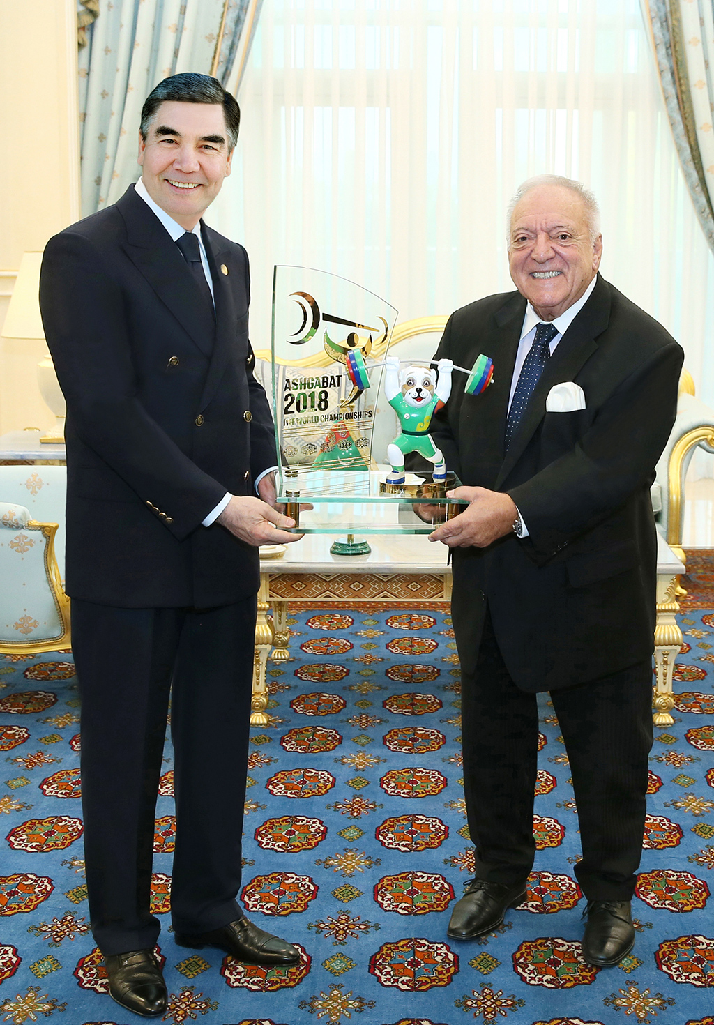 President Gurbanguly Berdimuhamedov received President of the International Weightlifting Federation (IWF), Tamás Aján. Greeting the IWF Head, President Gurbanguly Berdimuhamedov awarded him the memorial signs of the 2018 World Weightlifting Championship that has brought together the best sportsmen on the planet. Thanking for the attention and the opportunity of a personal meeting, the guest congratulated the President of Turkmenistan on the success of the World Championship and on behalf of all the participants of the tournament expressed gratitude for the hospitality and favourable conditions created for the competitions. Mr. Tamás Aján underlined that the first international Olympic contest held in Ashgabat had become another contribution of Turkmenistan to the development of the sports diplomacy in the region and the world. Expressing satisfaction with the fruitful character of cooperation with this authoritative structure, President Gurbanguly Berdimuhamedov underlined that our state paid paramount attention to the comprehensive development of sport. The Turkmen leader noted that all necessary measures had been taken in order to hold the competitions at the high organizational level and confirmed Turkmenistan’s commitment to strengthen fruitful relations and contribute to widening the partnership with all interested parties in this sphere. During the meeting, the President of Turkmenistan and his guest exchanged their views on the prospects of cooperation and emphasized the most favourable prospects for its development. Particular attention was paid to the large-scale work taken place in the county to popularize the physical culture and health improving movement, the healthy life style and create all conditions for practicing various sports. According to the President of Turkmenistan, the modern sports complexes are erected in the capital, the regions and the Avaza National tourist zone to host international contests. The IWF President highly evaluated our country’s achievements in this sphere that is vividly exemplified by the V Asian Indoor and Martial Arts Games and other tournaments held in the country, Turkmen athletes’ numerous victories at various contests, modern sports complexes, including the largest in the region Olympic Village. President Gurbanguly Berdimuhamedov and IWF President, Tamás Aján discussed the preliminary results of the 2018 World Championship that brought together the athletes from more than a hundred states, including the countries of Africa, Europe, America and Oceania. Five countries competed for the right to host the tournament, but IWF decided to hold it in Turkmenistan that has achieved remarkable results in all spheres, including sport. The IWF President emphasized that due to the modern infrastructure of sports and the positive national experience in organizing various tournaments, the 2018 World Weightlifting Championship had become a memorable event that has raised the international authority of the country. Underlining that Turkmenistan received requests to host the world competitions in cycling, sambo, boxing and the Asian Beach Games in the near future, the President of Turkmenistan expressed the willingness to consider the possibility to organize the weightlifting championship in our country one more time in the future. Expressing gratitude for the offer, the IWF President underlined that the International Weightlifting Federation would continue providing every possible support to the further development of the Turkmen school of weightlifting. President Gurbanguly Berdimuhamedov and IWF President, Tamás Aján expressed belief in the further development of the fruitful cooperation between Turkmenistan and IWF that has great potential and meets the constructive goals of the international sports movement.