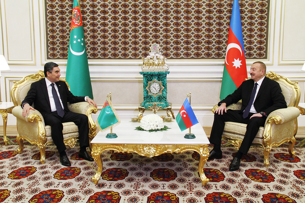 One-on-one talks between the Presidents of Turkmenistan and Azerbaijan were held in the capital of Turkmenistan. President Gurbanguly Berdimuhamedov welcomed the distinguished guest and thanked his Azerbaijani colleague for the attention given to the development of interstate relations that are based on the traditions of friendship and the historical, cultural and spiritual commonalities. The Turkmen leader noted that the two countries also successfully cooperated on the international arena and shared the common vision on the pertinent issues on the regional and global agenda. The head of state expressed confidence that the Turkmenistan–Azerbaijan cooperation, that is built on this solid foundation and has a strong potential, will continue to progress for the benefit of all. President Ilham Aliyev thanked the Turkmen leader for the invitation to conduct an official visit to Ashgabat and for the cordial welcome. He noted that the bilateral partnership possessed broad opportunities, rendering which would serve the interests of our brotherly nations, historically tied with bonds of good-neighborliness and spiritual kinship. Azerbaijan sincerely welcomes the success of friendly Turkmenistan, the distinguished guest said and also stressed that his visit aimed to further strengthen the fruitful interstate cooperation in all fields. The President of Azerbaijan highlighted the constructive nature of the Turkmenistan–Azerbaijan dialog and expressed confidence that the cooperation between our countries will continue to progress both in bilateral format and within reputable international organizations. The constructive discussion was held in the atmosphere of trust, and the heads of two states reviewed a wide range of issues related to the Turkmenistan–Azerbaijan relations that have recently made a qualitative leap forward and acquired a nature of strategic partnership. Presidents Gurbanguly Berdimuhamedov and Ilham Aliyev focused on the key aspects of cooperation built on the principles of equality, mutual advantage and sustainability, and noted that the effective realization of the multidimensional potential of cooperation would serve the goals of general welfare. The sides also exchanged views on the pressing issues of mutual interest included in the regional and international agenda.