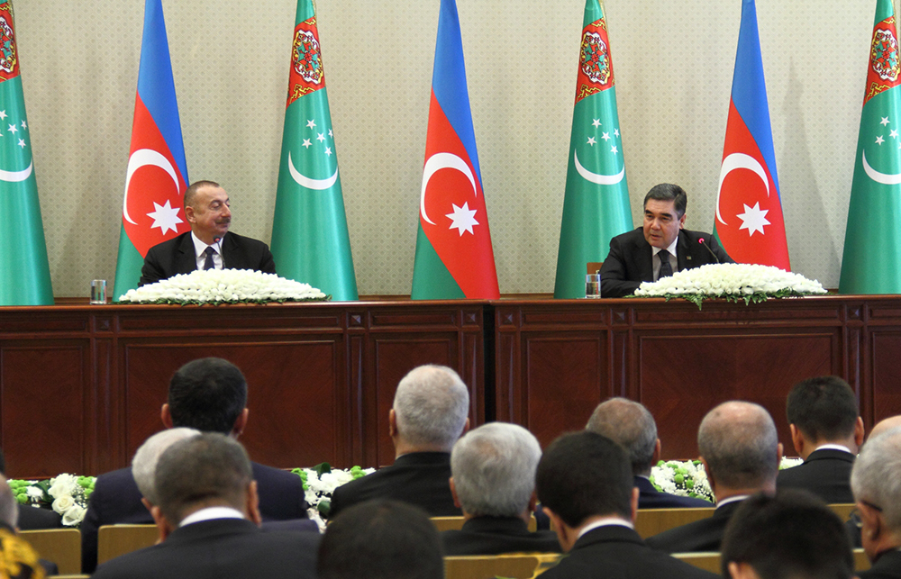 Upon completion of the ceremony of signing the bilateral documents, Presidents of Turkmenistan and Azerbaijan held a press conference. Commenting on the outcomes of the top-level talks, President Gurbanguly Berdimuhamedov underlined the constructiveness of the talks that focused on the aspects of the bilateral relations, their status and prospects as well as the regional and global agenda. It was noted that Turkmenistan and Azerbaijan demonstrate the identity or similarity of the positions on the important international aspects, first of all, with regards to the maintenance of stability and security in the region and the world as well. The head of Turkmenistan thanked Azerbaijan for the support of all the initiatives put forward by our country. In turn, Turkmenistan regularly supports fraternal Azerbaijan. The President of Turkmenistan noted that the exchange of views on the cooperation on the Caspian Sea that unites the two countries took place during the talks. As is known, the Convention on the legal status of the Caspian Sea has been adopted recently. President Gurbanguly Berdimuhamedov emphasized that standing for that the Caspian Sea always be the sea of peace and good neighbourliness we would continue pursuing this policy. A wide range of issues of the Turkmen-Azerbaijani partnership in the trade and economic sphere, including in the context of such promising areas as agriculture, construction, industry, new technologies, transport were considered during the talks. Among the main areas of cooperation, the Turkmen leader specified the energy sector. There are wide opportunities for the consolidation of the efforts to export energy sources to the regional and international markets. The work of the Intergovernmental Commission on Economic Cooperation of Turkmenistan and Azerbaijan significantly contributes to ensure the further productive cooperation. The head of state noted that the common historical and cultural roots of the peoples of Turkmenistan and Azerbaijan served as a key factor for the development of the cultural and humanitarian cooperation. At the present, the good traditions, being passed on to the future generations and contributing to their education in the spirit of patriotism and national values, find their continuation. In this context, President Gurbanguly Berdimuhamedov noted, the talks touched upon the theme of applied arts, traditional for our peoples – carpet weaving. Turkmenistan and Azerbaijan have always been famous for their carpets. The leaders of the two states underlined the importance of organizing carpet expositions in both countries, and considered the opportunity an International Conference. Thus, a wide range of issues were considered and a solid package of documents was signed. In this regard, addressing the representatives of the media, the President of Turkmenistan focused on two aspects, the first of which is transport. The parties expressed their intention to develop the transit corridors and the corresponding logistics system. It was also agreed that a special commission of Turkmenistan and Azerbaijan will be responsible for the above-mentioned issues. In this regard, the President of Turkmenistan noted that Turkmenistan and Azerbaijan had many significant examples of partnership, including the signed Agreement on the creation of a transit transport corridor between Afghanistan, Turkmenistan, Azerbaijan, Georgia and Turkey with access to the European direction that connects Central Asia with Europe along the East-West line. As for the partnership with specialized international structures, there are good opportunities for cooperation, in particular, through TRACECA, IRU among others. President Gurbanguly Berdimuhamedov noted that an international conference would be held on November 28. “Today, we have discussed that we could provide the member countries with certain preferences, for example, preferential tariffs, etc. Now, the most important thing is to develop the proper logistics”. The President of Turkmenistan also focused on the Programme on Trade and Economic Cooperation for 2019-2021 that was signed on the outcomes of the top-level talks. The programme will also contribute to the further diversification of the product range. At present, according to statistics, the turnover rate increases every passing year, and as compared to the same period of 2017, it increased by about 17 percent. Speaking about this, the head of Turkmenistan underlined the important role of the work of the Intergovernmental Commission for Economic Cooperation. President Gurbanguly Berdimuhamedov noted that the top-level talks between Turkmenistan and Azerbaijan were held in an atmosphere of mutual respect and trust, demonstrating the mutual commitment of the parties to the further mutually beneficial cooperation. Taking this opportunity, the President of Turkmenistan thanked President Ilham Aliyev for his personal contribution to strengthening of the Turkmen-Azerbaijani friendship, and addressed the best wishes to the distinguished guest and the entire fraternal people of Azerbaijan.