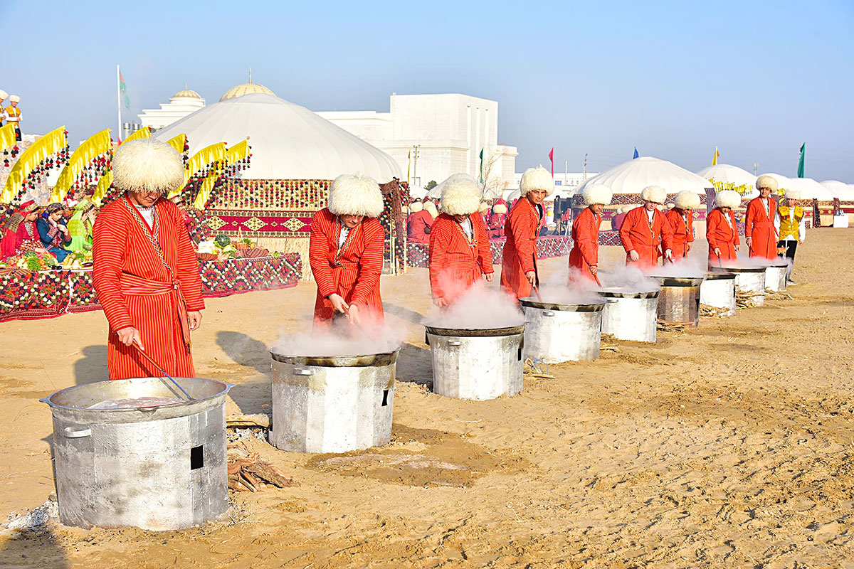 Foundations laying ceremonies of «Türkmeniň ak öýi» buildings was held in in administrative centres of Balkan, Dashoguz and Lebap Velayats. Magnificent constructions of original architecture in the shape of Turkmen ‘yurta’ are designated for big ceremonies and cultural events. Happy atmosphere of big celebration was reigning from the morning on the territory of future facilities, which would be built shortly in Balkanabat, Dashoguz and Turkmenabat. Flags, banners and colour balloons were everywhere. National ‘yurtas’ were set up and exhibitions of decorative and applied art were expanded at the sites. Concerts of popular singers, national musicians and folk ensembles were organized. Representatives of regional and city administrations, public organizations and facilities, elders and youth took part in the ceremonies on occasion of remarkable event. «Türkmeniň ak öýi» buildings are designed for 3,000 seats. In general, this is large concert hall, arena for mass events of national and international significance and celebration performances, which is built in the shape of huge white Turkmen ‘yurta’. First similar social and cultural facility was built in administration centre of Mary Velayat in November 2015. Opening ceremony of «Türkmeniň ak öýi» in Ahal Velayat was held with the participation of the President of the country in October last year. Magnificent white ‘yurta’ was built in «Nowruz ýaýlasy» in the Kopetdag foothill valley where Nowruz Bayramy – centuries-old Spring Holiday, is widely celebrated every year. This one of the most ancient celebration of many nations including Turkmens was included to the UNESCO Intangible Cultural Heritage List in 2009. In 2010, March 21 was declared as International Nowruz Day by the Resolution of the UN General Assembly. Today, wide international interest to Turkmen culture, its roots and traditions is obvious. Modern Turkmenistan makes significant contribution to the world treasury of human civilization. Foreign policy of our country is based on such principles as friendship, solidarity, peace loving and kindness. In this aspect, white ‘yurta’ is an original symbol of prosperity, friendliness and hospitality of Turkmen people. For sure, it is not used anymore as a place to live in but, having come out far beyond these limits, it became the symbol of respect of traditions, family attitudes, sanctity of home hearth and solidarity. Even in our days when modern comfortable apartment buildings are erected all over Turkmenistan, ‘yurta’ can be seen not only in rural areas but also in the cities. Today, this is a bound attribute of bright national celebration and bog family events. In Balkanabat, the building of «Türkmeniň ak öýi» will be raised in one of new micro districts, which is under construction in the western part of the city. There is a square with 100-meter flag pole in the centre for the State flag of Turkmenistan nearby as well as the hyakimlik of Balkan Velayat and other administrative buildings. In Dashoguz, this facility will be the part of architectural ensemble, which was made recently along Ruhnama Street. It includes modern comfortable hotel, the Palace of Happiness “Bagt Koshgy”, sport complex with stadium for 10,000 visitors, hippodrome and other. In Turkmenabat, new facility will be built next to the main street of the city Bitarap Turkmenistan. This area is also decorated with magnificent facilities of Ruhiyet Palace, “Bagt Koshgy”, Central Sport Complex and other social infrastructure. «Türkmeniň ak öýi» building will put into operation in June 2021. Appearance of new buildings representing white ‘yurta’ will harmonically combine original tradition of Turkmen architecture and modern achievements of construction art. Interior design will be also distinguished by the originality and bright national colour, in particular, it is planned to use carpet patterns and decorative elements repeating slatted carcasses of Turkmen ‘yurtas’. In general, «Türkmeniň ak öýi» is unique construction of high engineering complexity. The project plans to provide the most advanced technical equipment to the buildings. Each floor will have spacious premises, concert hall with stage and arena, offices and other rooms. Sound systems and other necessary appliances will be installed in the buildings for large-scale forums and bright performances including with the participation of famous Turkmen horsemen. It is also planned to develop the territory around the buildings and plant trees. In addition, it will have shaded pavilion for 3,000 seats to hold traditional food donation, helipad, car parking and different engineering and technical facilities. Complexes of new facilities ill be built by local construction companies.