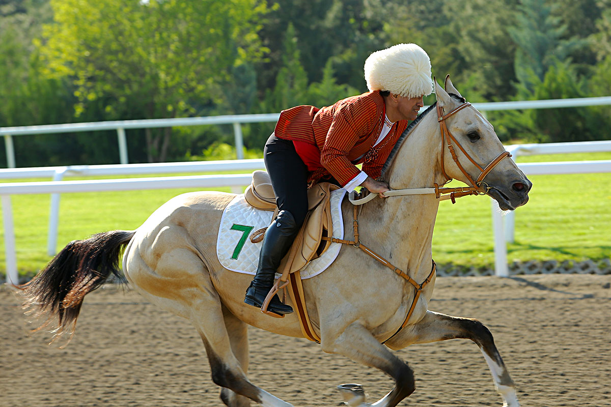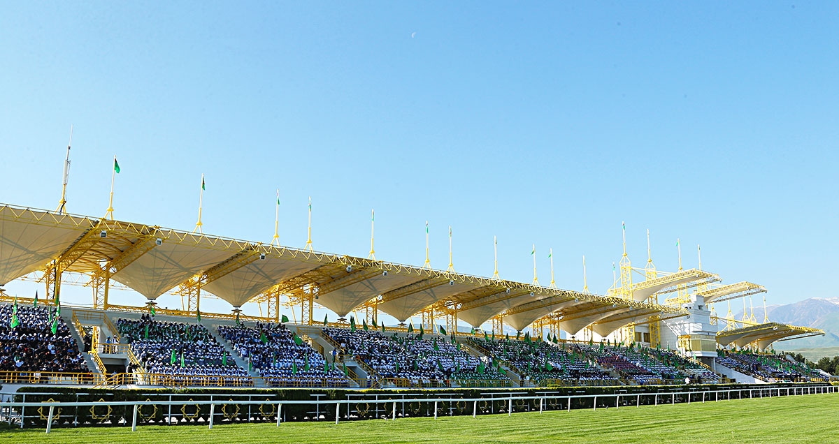 President Gurbanguly Berdimuhamedov took part in the events in Ahalteke Equestrian Complex. It hosted the races among senior master jockeys, the award ceremony of the winners of international ahalteke horse beauty contest and artistic contest for the best image of horse on the threshold of National Turkmen Horse Celebration Holiday. The Vice-premiers, heads of the Mejlis, ministries and departments, military and law enforcement agencies, hyakims of the velayats and Ashgabat, diplomatic missions accredited in Turkmenistan, members of International Ahalteke Equestrian Association, foreign guests, representative of foreign and national mass media. Famous horse breeders from all parts of the country have also been among the participants. All participants have warmly greeted the Head of the State. Popular Turkmen artists and dance bands demonstrated musical performance before the main events. Each velayat and the capital’s administration have presented ahalteke horses to President Gurbanguly Berdimuhamedov as a sign of recognition of the merits for the development of equestrian industry, preservation and increment of the livestock of pure ahalteke breed, its popularization in the world. Hyakims of the velayats, elders and representatives of younger generation came out together with horses. Having handed over the passport of the horse, they were expressing the gratitude on behalf of the residents of Ahal, Balkan, Dashoguz, Lebap, Mary Velayats and Ashgabat. An excellent racehorse and its passport have been presented to President Gurbanguly Berdimuhamedov on behalf of military and law enforcement agencies. Another gift was presented from all horse breeders of the country. An excellent racehorse has been brought out to the demonstration ground. As per tradition, the President of Turkmenistan has tied an ‘alaja’ as a token charm and a symbol of new friendship around the horse neck, then saddled the horse and made a circle riding the horse in calm pace. The horse recognized skilled and sensitive rider at once and following his command, accelerate the pace changing to trot. The Head of the State took out the horse to the track and ride along it under loud applauses of the participants and went to the tribunes afterwards. After, the racing competitions among master jockeys took place. This spectacular equestrian sport is very famous among Turkmen people and from the ancient times, it was used as a method of testing the horse and development of its speed characteristics, which are the most outstanding merits of ahalteke breed. It defines the destiny of the breed, its internal breed lines, founders and continuers of which are the fastest horses, the wines of the races. Current competitions allowed again seeing the endurance and speed of Turkmen horses, which are the results of work of Turkmen coaches, and demonstrated filigree technique of skilled jockeys. Pygy Bayramdurdiyev, who is known not only in our country but also abroad as a leader of famous Galkynysh Equestrian Group and who is the winner of high prizes of prestige international festivals and contest, won the first place in the races among master jockeys. It was him, the Honoured Culture Personnel of Turkmenistan Pygy Bayramdurdiyev, who was entrusted with great honour to lit up the flare of the Asian Indoor and Martial Arts Games, which were successfully held in Ashgabat in September, 2017.