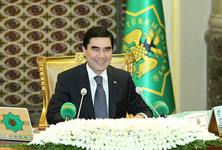 On July 9, President of Turkmenistan Gurbanguly Berdymuhamedov held an enlarged meeting of the Cabinet of Ministers to sum up the running year’s six-month state-of-the-economy results, discuss the results achieved during implementation of the Presidential program and other programs of socio-economic development of the country. Reading out the agenda of the meeting attended by representatives of Mejlis of Turkmenistan, khyakims of velayats and etraps, Universities’ rectors, editors of newspapers and magazines, other governmental officials, the head of state informed that the session would also consider the personnel-related issues and the tasks for the second half of the current year. To start hearing and assessing the reports, the head of state gave the floor to the Cabinet Deputy Chairman A. Gochyev. His six-month activity report the vice-premier supported with the macroeconomic indicators. The financial-economic strategy pursued resulted in ensuring sustainable development of the national economy and creating necessary conditions for the effective use of public funds. In accordance with the indicators of the period under review, the GDP growth rates in percentage term made up 109.1, including: in the industrial sector – 106.2, in construction – 112.1, in transport and communication sector – 111.3, in trade – 111.4, in agriculture – 111, in services – 111.6. Currently, the private sector’s share in the GDP is 65.1 percent (less the fuel and energy complex). As against the previous year’s similar period, the growth rate of the manufactured products reached the level of 108.1 percent. The six-month volume of retail trade turnover compared with half-year-earlier period of 2014 has increased by 19.5 percent. The growth of foreign trade turnover has also been recorded. Vice-Premier has reported that currently construction of more than 2 thousand different objects is countrywide in progress in the frames of the national development programs. Budgeting of capital needs at the expense of all sources of financing amounted to 21.2 billion manats at the growth rate of 107.9 percent compared with the same period in 2014. The proportion of this macroeconomic indicator to GDP is 41.7 percent. Then, Chairman of the State Statistics Committee of Turkmenistan A. Mammedov reported to the head of state Gurbanguly Berdymuhamedov on the results of work and economic indicators achieved by the sectors for the six months of 2015. As it was reported, against the previous year’s similar period, the productivity growth rates in percentage term made up: oil – 107.8, electricity production – 102.1, gasoline – 101.1, kerosene – 100.2, petroleum bitumen – 119.8, petroleum coke – 100.2, liquefied gas – 100.5, polypropylene – 100.2, cement – 107.2, non-metallic construction materials – 120, fittings and other metal products – 101.2, glass plastic pipes – 105.6, cotton yarn – 104.4, cotton fabrics – 112.2, processed and preserved fish and fish products –148.6; production of mineral fertilizers has increased by 2.2 times. During the reporting period, the growth was fixated of production of various types of agricultural products. As of this year’s July 6, the country has produced 1 million 356.4 thousand tons of grain (a 14.7 percent increase). According to the six-month results, the cocoon production has increased by 17.8 percent, fruit and vegetables –10.2percent, melons –12.3 percent, eggs –5.7percent, milk –1.5percent, meat –1.3 percent. During the same period, an increase has been fixated in livestock and poultry population. Summarizing the results of the period under review, the amounts expended for construction-installation and other kinds of activities and for capital needs increased by 14.5 percent against similar period of 2014. In the transport sector, as compared to the last year’s similar period, the growth rate of the volume of freight traffic (all types of transport, excluding pipelines transport, amounted to 102.4 percent, including: road transport – 105 percent; railway – 100.1 percent; air – 100.5 percent; water – 100.1 percent. The growth rate of passenger traffic reached 102.3 percent, including: road transport – 102.8 percent; railway and air – 100.1percent; water – 108.5percent. Due to introduction of advanced technologies, the volume of electronic communications services provided to the population increased by 8.9 percent. Next speaker, the Minister of Finance M. Muhammedov focused on the implementation of the State Budget of Turkmenistan for the January-June 2015 period. During the period under review, the Budget revenue item made up 102.8 percent and expenditures – 90.4 percent; 79.3 percent of the budget was channeled for the social sphere; implementation of the revenue item of local budget amounted to 101.7 percent, and expenditures – 90.9 percent. Over the period under review, 78 meetings of the Central, sectoral and regional balance commissions were held, in the course of which the financial and economic indicators of 8 ministries and sectoral departments, and 259 enterprises were analyzed, and the relevant decisions were adopted. During the first half of the year, a set of measures was accomplished on realizing the Budget Code provisions, on developing the relevant normative legal acts, personnel training and retraining. The Finance Minister also informed about the work carried out for advancing the auditing activities, the securities market, the transition to national accounting and financial reporting standards based on the international ones. During the period under the review, the Inspections and Audits Office of the Ministry of Finance of Turkmenistan carried out an audit of the financial-economic activity of 902 enterprises and organizations. According to the results of checks, the financial violations were revealed in 609 institutions. During the same period, the inspections on observing the state prici