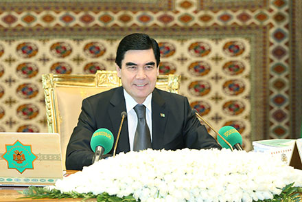 On April 3, President of Turkmenistan Gurbanguly Berdymuhamedov convened an enlarged session of the Cabinet of Ministers to sum up this year’s first quarter work results in the national economy’s sectors and consider a number of other important issues of state life. Addressing the session agenda, President Gurbanguly Berdymuhamedov gave the floor to Deputy Chairman of the Cabinet A. Gochyev to report on the country’s socio-economic development in the first quarter of the running year. The macroeconomic indicators for January-March of 2015 testified to the steady and dynamical GDP growth. As compared to the last year’s similar period, the production growth rate has made up 110.2 percent. High industrial indices have been achieved practically in all sectors of the national economy. In the period under consideration, the retail trade turnover has increased by 16.9 percent, as compared to the same period of 2014. The volume of assimilated investments from all financing sources has increased in comparison with the last year’s similar period. The ratio of the growth rate to GDP has made up 36.5 percent. Next speaker, Chairman of the State Statistics Committee A. Mammedov gave an account of work results and economic indicators in the country’s ministries and agencies for January-March, 2015. As compared to the same period of 2014, high indicators were observed in many sectors. In particular, the three-month production growth rates made up in the percentage term: electric power – 102.9, natural gas – 105, petroleum – 110, gasoline – 100.9, kerosene – 100.4, lubricants – 102.5, liquefied gas – 101.1, polypropylene – 100.2, petroleum coke – 100.4, petroleum bitumen – 118.4, plastic and fiber-glass pipes – 108.7, mineral fertilizers – 192.5, iodine – 103.1, cement – 111.2, nonmetallic building materials – 126.8, cotton – 109.8, cotton fabrics – 110.2 and pharmaceutical products – 108.9. The output of agricultural products, in particular, meat, milk, eggs and vegetables has increased in comparison with the similar period of 2014. As of April 1, 2015, the production growth rates in livestock and poultry was recorded. The volume of construction works, executed has increased by 14.2 percent against the previous year’s similar period. The growth rate in goods transportation by all modes of transport (excluding pipeline transportation) has made up 4.6 percent, and passenger transportation has reached 102.5 percent. Revenues from the services, rendered to the population in the communications sector, have increased by 8.2 percent, as compared to the same period of 2014. In his turn, Minister of Finance M. Muhammedov reported on execution of the State Budget of Turkmenistan, as well as on the January-March work results in the supervised sectors. In the period under review, the country’s State Budget revenues were 104.4 percent, and its expenditures have accounted for 91.2 percent. 77.3 percent of budgetary funds have been invested in the social sphere. The local budget revenues made up 103.7 percent fulfilled and its expenditures – 93.6 percent. The Minister of Finance also centered on the measures taken to promote further development of the insurance activities and stock market, as well as to introduce the national accounting and auditing standards. Then, Minister of Economy and Development V. Abdylhekimov informed about the state of affairs in the sector, he is in charge of, and the implementation progress of the National Program for regions’ development. The volume of assimilated investments from all sources of funding allocated for implementation of the within-said program made up 35.7 percent of the annual plan. This indicator has reached 28 percent in Akhal velayat; 25.5 percent – in Balkan velayat; 37.7 percent – in Dashoguz velayat, 56.6 percent – in Lebap; 33.8 percent – in Mary velayats. In the January-March period, 4 facilities were put into operation; 148 objects are currently under construction. Besides, 91.6 thousand square meters of dwelling were constructed, 228.1 kilometers of water pipes, 44 kilometers of roads, 325.3 kilometers of gas pipelines, 513.4 kilometers of transmission lines, and 604.5 kilometers of telephone network were completed. Next speaker, Bank Management Chairman of the Central Bank of Turkmenistan A. Annadurdyev concentrated on the banking sector’s activity, the steps taken to maintain a stable rate of the national currency. The report included the information about currency incoming to accounts of the country’s ministries and sectoral departments in the current year’s first quarter. As reported, the plan was 101.4 percent fulfilled. Chairperson of Mejlis of Turkmenistan A. Nurberdyeva reported on the national parliament’s activity. In the period under review, one Mejlis session was held, in the course of which 26 laws and 19 resolutions were adopted. Preparation of new legislative acts is well under way. At the same time, the national parliament’s leader informed about the work on improving the Constitution of Turkmenistan, in the frames of which proposals submitted by citizens, state institutions and other organizations are analyzed, considered and classified. The preparatory work for the upcoming election of Gengesh members of the seventh convocation is in progress. Deputy Chairman of the Cabinet, Manager of the Presidential and Cabinet Administration Office Sh. Durdylyev made a report on the three-month results of the investment and building activity in Ashgabat, as well as on the ongoing work on the capital’s development. In particular, the plan of Ashgabat city’s khyakimlik (from all financing sources) was 1459.92 million manats; assimilated capital investments have reached 1898.03 million manats. Thus, the relevant plan was 130 percent implemented (growth rate 110.3 percent, as compared to the last year’s similar period). In the frames of the 2015-2016 Ashgabat Development Conception, 