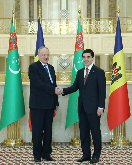 On April 7, talks between President of Turkmenistan Gurbanguly Berdymuhamedov and President of Moldova Nicolae Timofti, who had arrived in our country on an official visit, were held in the Turkmen capital. In the morning, the high guest proceeded from his guest residence to Independence Square, located in the center of Ashgabat. Here, the President of Turkmenistan warmly welcomed the President of the Republic of Moldova. After the official arrival ceremony, the two heads of state proceeded to the “Ruhyet” Palace. President Gurbanguly Berdymuhamedov invited President Nicolae Timofti to the “Beg” Hall to hold the Turkmen-Moldovan summit talks in the “one-to-one” format. Warmly welcoming his Moldovan counterpart in the Turkmen land, the head of Turkmenistan has expressed confidence that the visit and the ongoing negotiations will give renewed impetus to the Turkmen-Moldovan cooperation, which is successfully developing in its entire spectrum, and will strengthen the traditional ties of friendship between the two countries and peoples. Sincerely appreciative to the Turkmen leader of the warm welcome and having noted that it was his first-ever visit to Turkmenistan, the eminent guest has stressed that in Moldova the summit talks are considered as an important event in the history of interstate relations, which are being enriched with new content now. President Nicolae Timofti confirmed the commitment of the Republic of Moldova to all-round strengthening and expansion of the friendly cooperation with Turkmenistan, which pursues a constructive foreign policy that has received support and recognition from the entire world community. In continuation of the talks, the leaders of two countries discussed a wide range of issues of the Turkmen-Moldovan partnership in the context of implementing the bilateral agreements reached earlier and prospects for the future, concretized key directions of interaction, given its potential. Noting with satisfaction the progressive dynamics of the interstate dialogue, President Gurbanguly Berdymuhamedov and President Nicolae Timofti highlighted the constructive character of cooperation between Turkmenistan and Moldova within the authoritative international organizations and agencies. Efficient contacts have been established between the two countries’ Foreign Ministries, the Turkmen-Moldovan consultations held in the Turkmen capital on April 6 serve as clear evidence. Having spoken for further broadening and diversification of the mutually beneficial trade-economic cooperation, the heads of Turkmenistan and the Republic of Moldova emphasized an important role of the Intergovernmental Turkmen-Moldovan Commission, whose first meeting had been held in Ashgabat the day before. The transport and communications sector was outlined as one of the top priority areas of the partnership. Both countries pay great attention to the development of cooperation in this direction. At the same time, there are also good prospects for cooperation in agriculture, food industry and other sectors. Having noted the importance of the humanitarian relations, the Presidents of Turkmenistan and the Republic of Moldova spoke in favor of advancing the fruitful bilateral contacts in the fields of science, education and culture. During the meeting, the sides also exchanged opinions on a range of topical issues of regional and international policy of mutual interest. Then the enlarged summit talks were held in the “Ruh” Hall with participation of the two country’s official delegations. Addressing the words of greeting to President of Moldova Nicolae Timofti and members of the representative delegation, President Gurbanguly Berdymuhamedov has emphasized that in Turkmenistan this visit is regarded as the continuation of the effective bilateral relations that were filled with specific content at the previous summit meeting, held in Chisinau in 2013. Having noted that advancement of the trade-economic relations and expansion of contacts in the cultural-humanitarian field are the most important aspects of the partnership, which entirely meets the two friendly peoples’ long-term cardinal interests, the leader of nation has stressed the need to make full use of the potential available and promote cooperation in new future-oriented, mutually beneficial trends. Speaking of the high level of mutual understanding and trust reached by now, which defines the successful interstate foreign policy dialogue, President Gurbanguly Berdymuhamedov has emphasized that Turkmenistan and Moldova have common positions, based on the principles of strengthening peace and ensuring security globally and regionally. As the head of Turkmen state noted, the work carried out in this direction is aimed at enhancing the role of the United Nations and the Organization for Security and Cooperation in Europe. In recent years, Turkmenistan and Moldova have considerably intensified cooperation within the organizations, and today hold the same position on many issues, making their significant contribution to ensuring sustainable development and strengthening mutual understanding in the world. These are of particular importance in the light of the complicated situations existing in some parts of the world, the leader of nation said. The Turkmen leader reminded that the Republic of Moldova had supported Turkmenistan during the elections to the UN Economic and Social Council, as well as to the UNESCO’s Executive Board and co-authored the UN General Assembly Resolutions on cooperation in the field of energy security and transport, adopted on our country’s initiative. Highly appraising Moldovan partners’ consistent and responsible attitude and sincerely appreciative to them, President Gurbanguly Berdymuhamedov has emphasized that Turkmenistan, in its turn, also rendered support to Moldova in the elections to international organizations, in particular to the UN Human Rights Council and a number of other authoritative o
