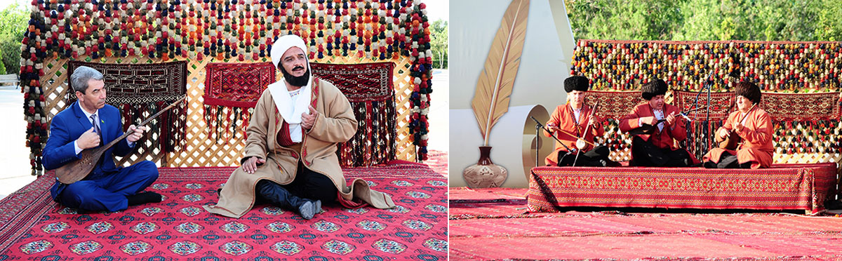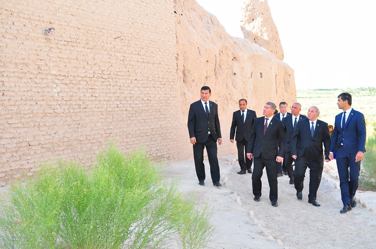 In line with the programme of the Week of Culture, the participants of the cultural event had an opportunity to visit the unique archaeological sites located in the Dashoguz Velayat, some of which are included in the UNESCO World Heritage List. The participants in the cultural forum visited the ancient city of Zamakhshar, located on the territory of the current Gorogly etrap, the homeland of the outstanding Turkmen scientist -encyclopedist, philosopher, theologian, philologist and writer of the 11th – 12th centuries Maḥmud Zamakhshari , whose works had a significant impact on the development of world science, and his mausoleum became a pilgrimage site not only for Turkmen citizens, but also for foreign guests. A colorful musical festival was arranged on the square located on the shore of the Yashlar Lake with the participation of students of the Dashoguz Velayat Art schools. Thematic exhibitions of works by students of Dashoguz and Dashoguz Etrap children's art schools were showcased there. Young performers pleased the guests with choreographic and folklore performances. A meeting devoted to the development of cinematography took place at the modern rural House of Culture in the “Altyn ýol” Geneslik of the etrap named after S. A. Niyazov. The premiere screening of the film “Beýik ýüpek ýoly” based on the book by the President of Turkmenistan “Turkmenistan is the Heart of the Great Silk Road” took place in frames of the meeting. In the evening, the festivities continued in the central part of Dashoguz, on Magtymguly Square. A literary evening was arranged at the monument to the great Turkmen poet. The programme of the second day of the Week of Culture was completed by the concert of masters of culture and arts.