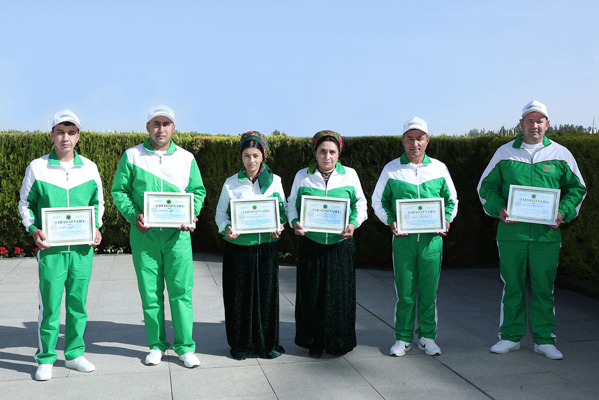 Thus, a beautiful horse Oguzkent was gifted on behalf of the workers of Ahal Region, Deniz from Balkan Region, Gyrbedew from Dashoguz Region, Köýtendag from Lebap Region, Murgap from Mary Region and Akşäher from Ashgabat.