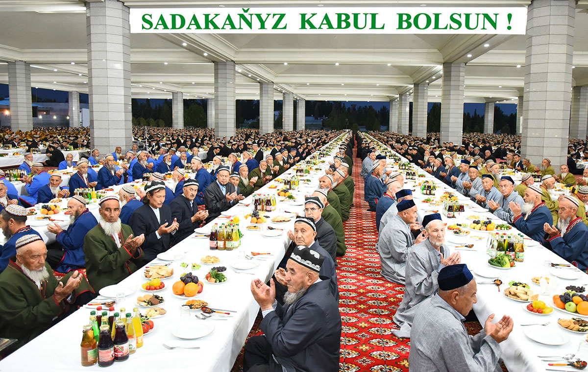 President Gurbanguly Berdimuhamedov has given fast breaking food donation in the Central mosque of the country located in Kypchak. President othe Republic of Uzbekistan Shavkat Murziyoyev has participated in the ceremony.