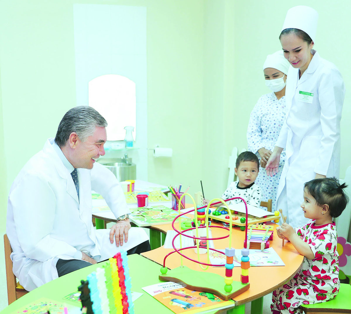 The Turkmen leader had a talk with the children who were undergoing treatment and their mothers and asked about their condition and the treatment effect.