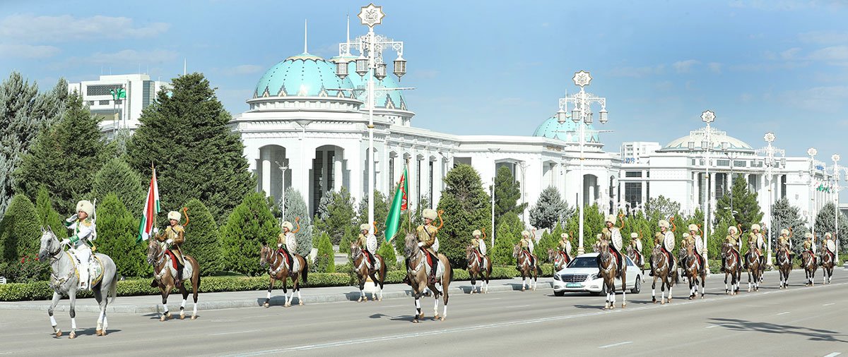 In the morning the motorcade of the head of the friendly state accompanied by an honourable escort of motorcyclists proceeded to of the Square of Independence located in the centre of Ashkhabad where the ceremony of an official meeting of the honoured guest took place.