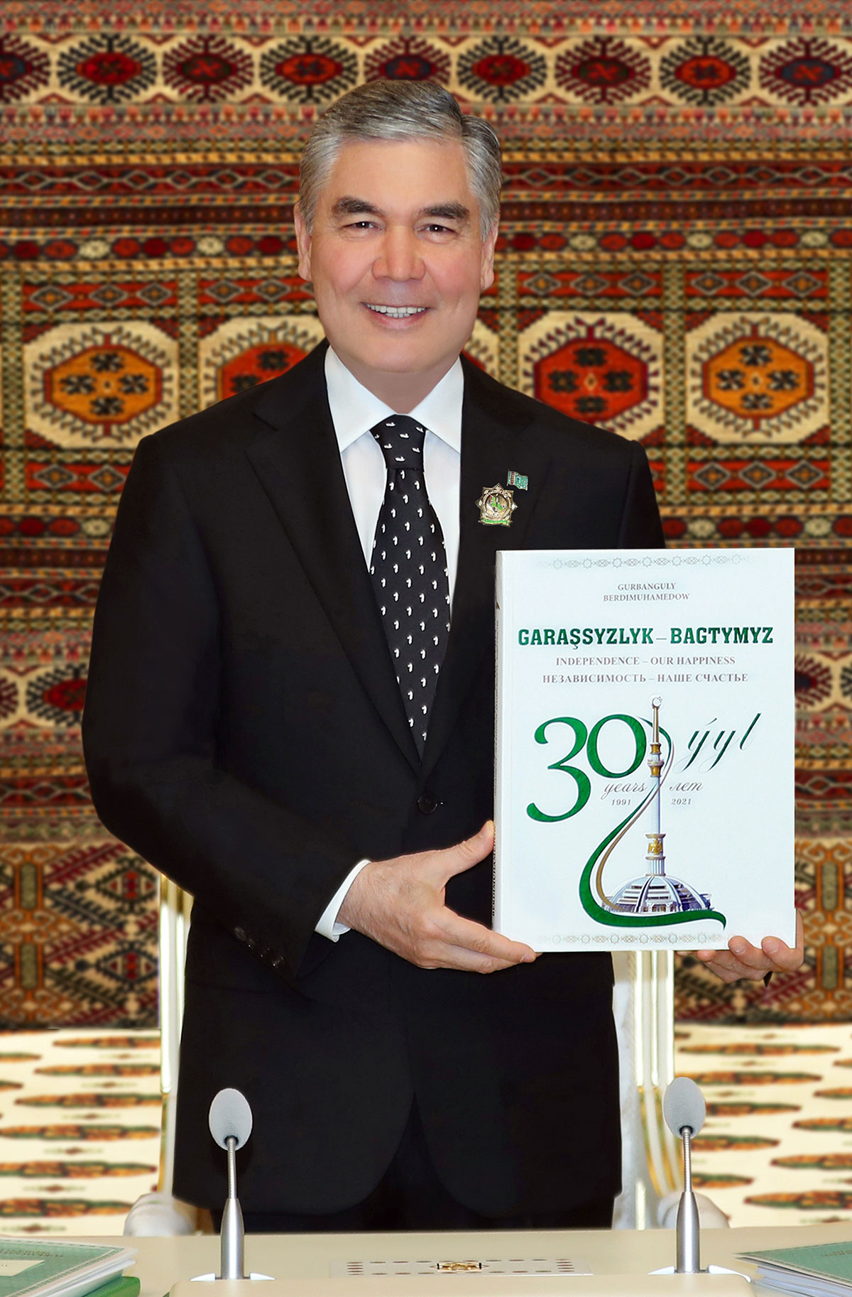 Then President Gurbanguly Berdimuhamedov for merits in strengthening of independence, sovereignty, legislation of the Fatherland, development of spheres of economy, culture and art, health care, science and education, sport, handed the anniversary medals "Türkmenistanyng Garashsyzlygynyng 30 ýyllygyna" and memorable signs to members of the government, chairperson of the Mejlis and deputy chairman of the Khalk Maslakhaty of the Milli Gengesh of Turkmenistan.