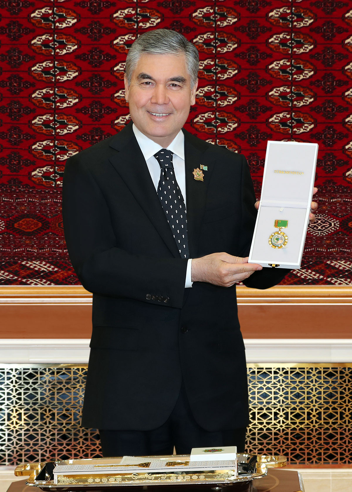 As it is noted in the document, the leader of the nation was awarded by them for a huge personal contribution to strengthening of independence of the Fatherland, increase in its economic power and international authority, improvement of the political system, implementation of the constitutional transformations conforming to the international standards, development of civil society, implementation of state programs in consecutive development of science, education, culture, art, health care, other directions of life of the country, transformation of image of our cities and villages, careful preservation, glorification of traditions, historical and cultural heritage of the Turkmen people, education of younger generation in the spirit of love for the country, fidelity, courage, honesty, special merits before our independent state and the native people.
