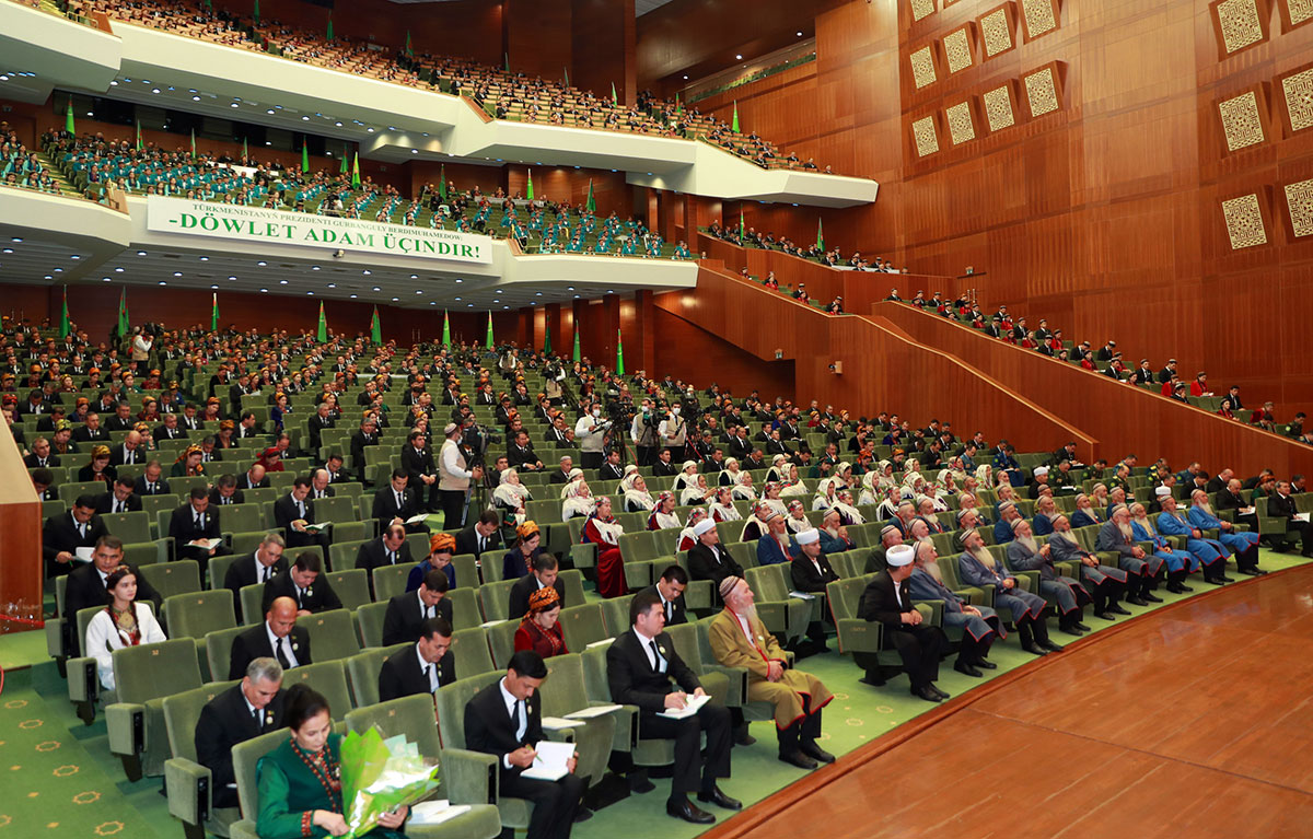 The chairperson of the Mejlis of the Milli Gengesh, deputy-chairmen of the Cabinet, heads of military and law enforcement agencies, ministries and branch departments, administrations of Ashgabat city and velayats participated in the meeting of the Khalk Maslakhaty. Among the gathered were Khalk Maslakhaty members and deputies of the Mejlis of the Millie Gengesh, representatives of the capital and all five regions of the country, honourable elders, dear mothers and student's youth.