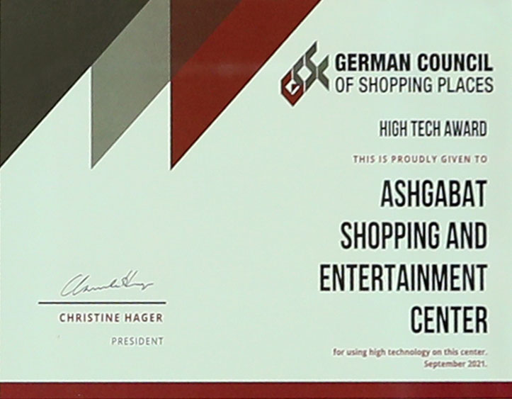 In particular, adviser for communications of shopping centres of the German Council of Germany Mrs Sabrina Kruger in the video message noted that for it a great honour to participate in the opening ceremony of the new complex built in the Turkmen capital and carrying the symbolical name "Ashgabat". Taking an opportunity, she warmly congratulated President Gurbanguly Berdimuhamedov and all Turkmen people on the significant date - the 30th anniversary of independence of Turkmenistan.