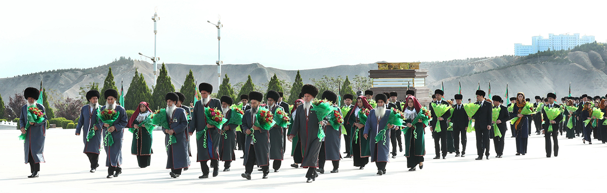 In the early morning, thousands of Ashgabat residents came to the Halk Hakydasy Memorial Complex, located in the south-western part of the capital and serving as a majestic symbol of deep reverence for valiant heroes, respect of the Turkmen people for their great past.