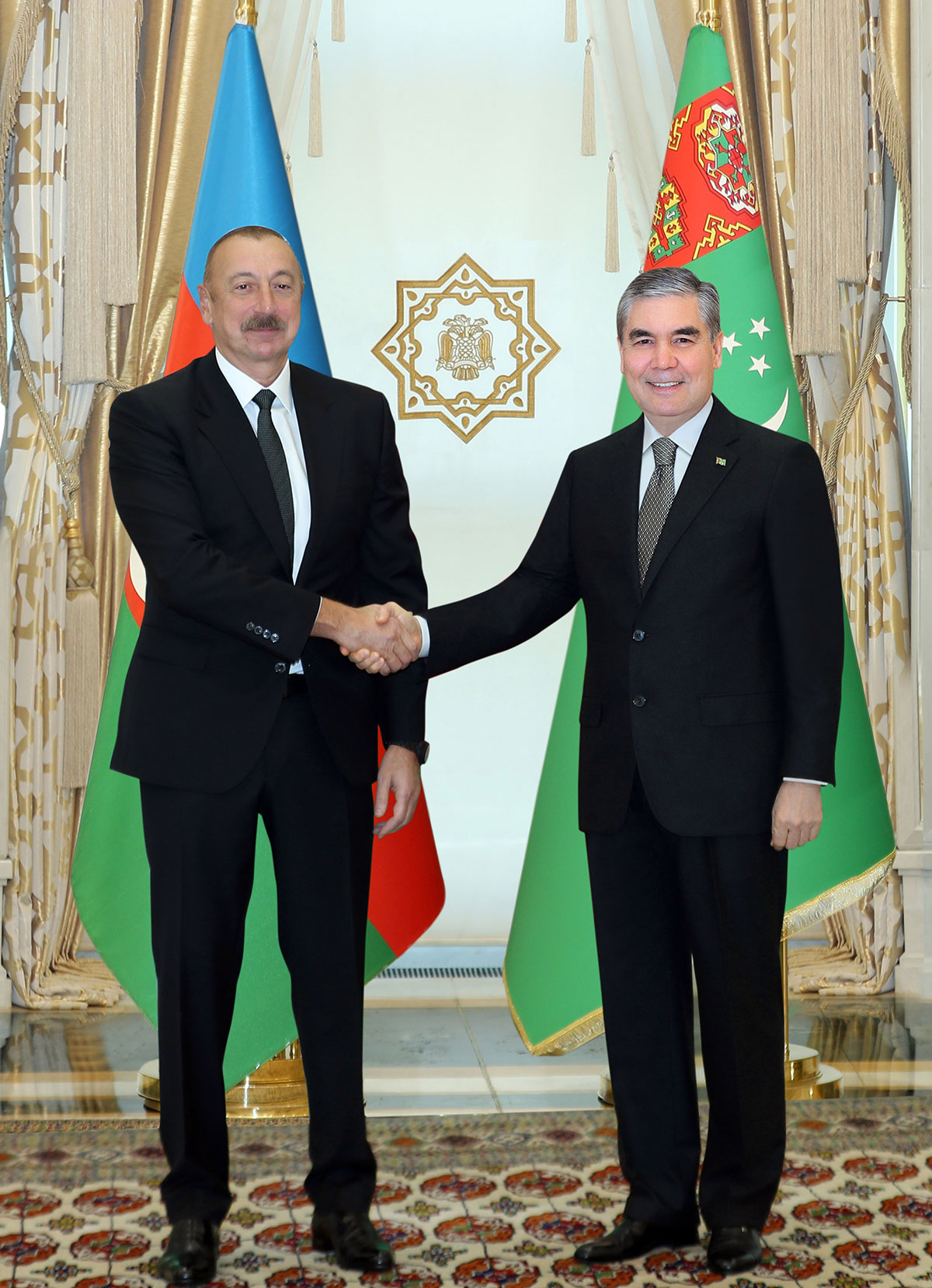 The presidents of the two countries were photographed against the background of the State flags of Turkmenistan and the Republic of Azerbaijan.
