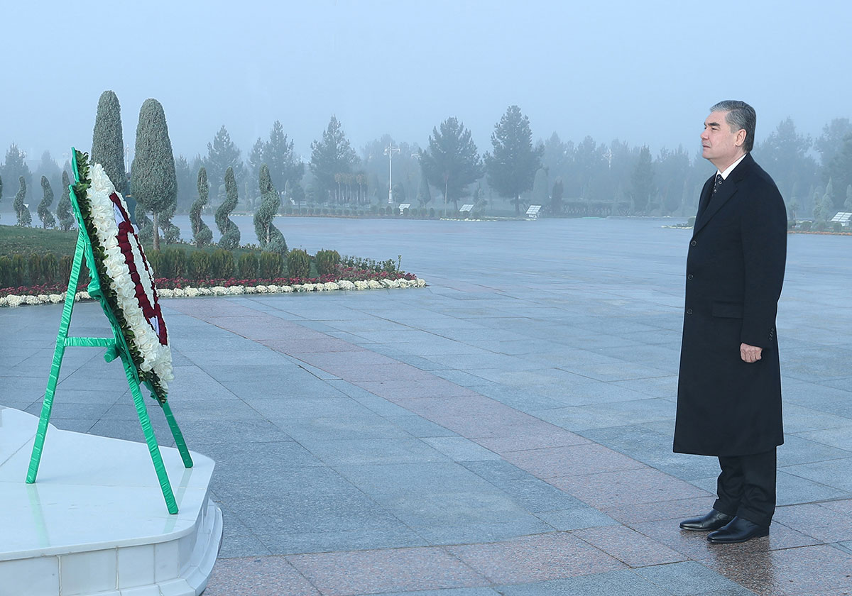 Chairman of the Mejlis of Milli Gengesh, Deputy Chairman of the Halk Maslakhaty of Milli Gengesh, deputy prime ministers, heads of military and law enforcement agencies, ministries and departments, khyakim of Ashgabat, ambassadors of Turkmenistan to foreign countries, heads of diplomatic missions and international organizations accredited in our country, elders, representatives of public organizations, mass media, and others gathered at the majestic monument erected in a picturesque corner of the Turkmen capital, at the foot of Kopetdag.