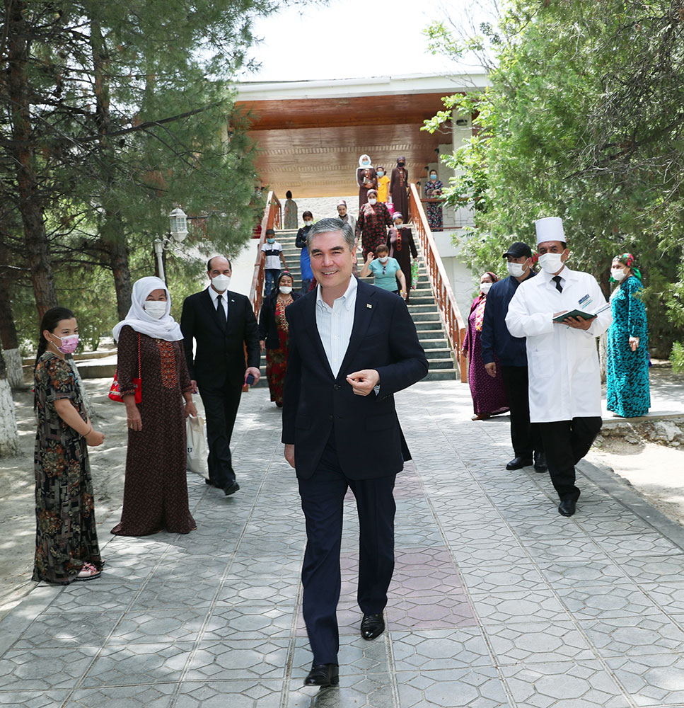 Today, the Chairman of the Halk Maslahaty of the Milli Gengesh "Honorary Elder of the People" of Turkmenistan Gurbanguly Berdimuhamedov visited the “Archman” sanatorium in the Baherden etrap and got acquainted with the work related to improving the health of the people and the conditions created for this. Arkadag Gurbanguly Berdimuhamedov met with vacationers and medical workers of the “Archman” sanatorium, inquired about their health, the features of the conditions created here for recreation, as well as the work of the staff.