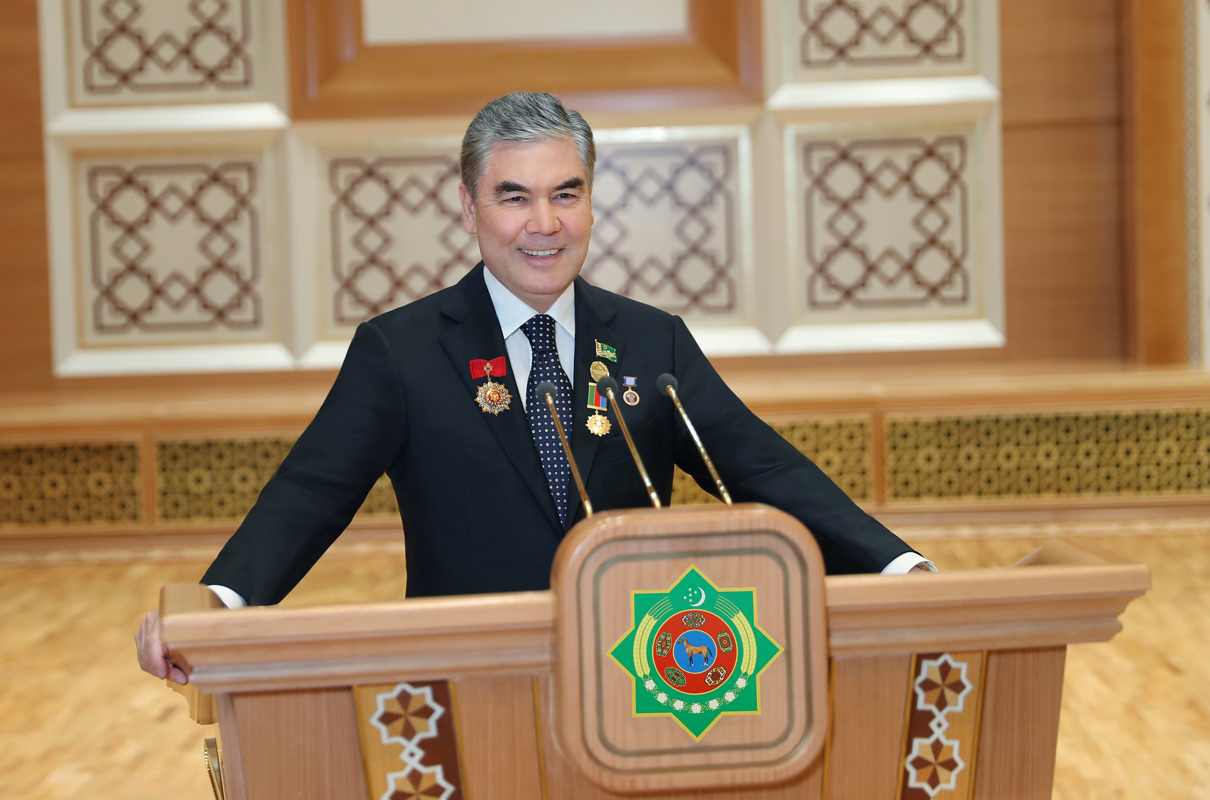 Underlining an outstanding contribution of Chairman of the Khalk Maslakhaty of the Milli Gengesh of Turkmenistan Gurbanguly Berdimuhamedov in the development of the friendly interstate dialogue as well as in the strengthening of universal peace, constructive regional and international cooperation, the guest informed on the decision to award him the National Prize "For the Sake of Peace on Earth" and the Golden Order of "Ulu Türk".