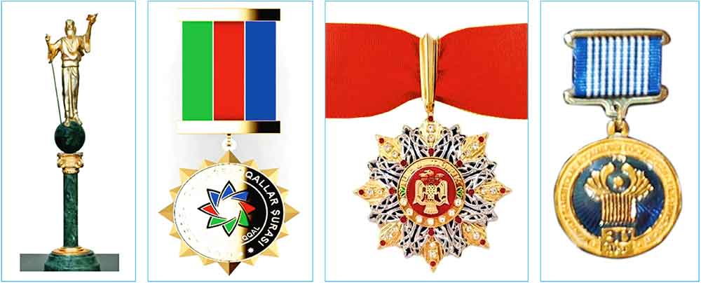 In a solemn atmosphere, founder and editor-in-chief of the Azerbaijan Dunyasy international magazine, chairman of the Dede Korkut National Foundation Eldar Ismail oglu Ismayilov handed Chairman of the Khalk Maslakhaty of the Milli Gengesh of Turkmenistan Gurbanguly Berdimuhamedov the National Prize "For the Sake of Peace on Earth" and the Golden Order of "Ulu Türk" as well as relevant certificates, expressing his warm congratulations and best wishes in this connection.