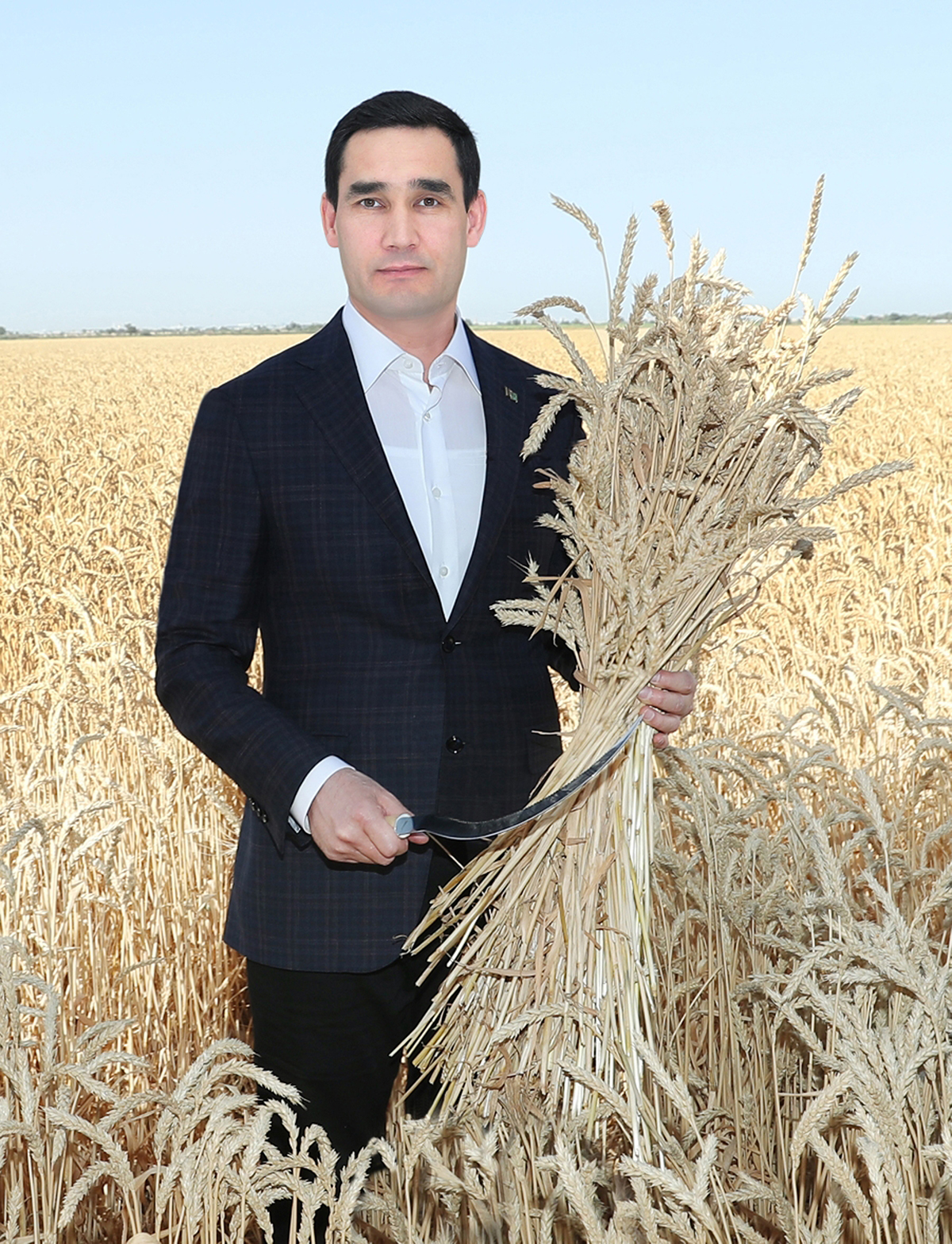 Further, the tenant farmer asked the President of Turkmenistan to give his blessing to start the grain harvesting. The head of the state with “bismilla” cut the bundle of ripened full-grown ears of wheat and wished the agriculturist a rich harvest. The gathered also followed his example.
