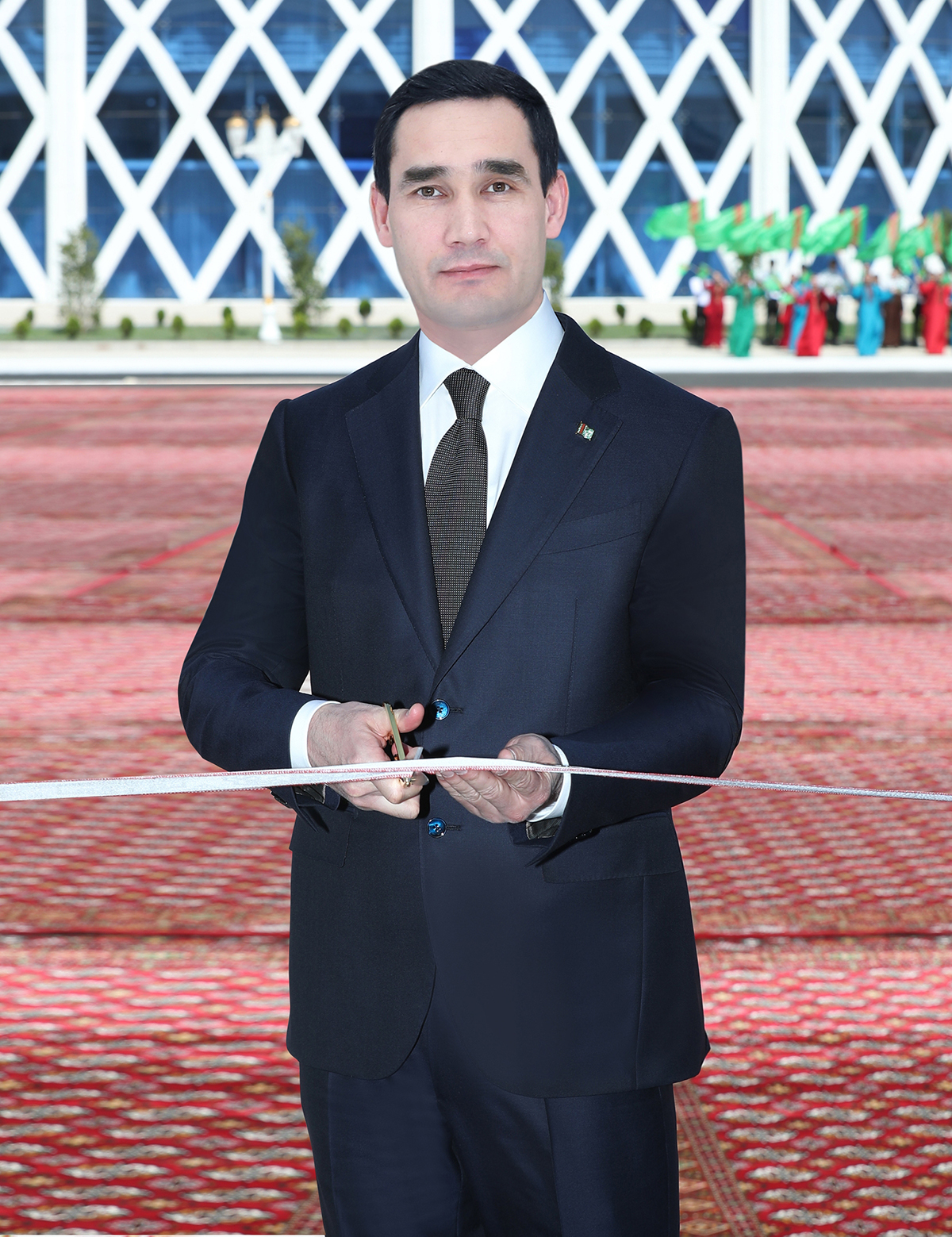 Having thanked the elders for prayers and sincere wishes, the President of Turkmenistan warmly bid farewell to the gathered and by car proceeded to the place of opening ceremony of the venue designated for holding mass festivities for 3 thousand persons located next to the building “Türkmeniň ak öýi”, making a unique ensemble with it.