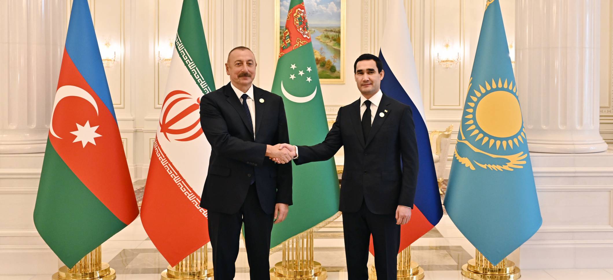 Today, President of Turkmenistan Serdar Berdimuhamedov met with President of the Republic of Azerbaijan Ilham Aliyev at the “Arkadag” Hotel, who arrived in our country to participate in the VI Summit of the Heads of the Caspian States.