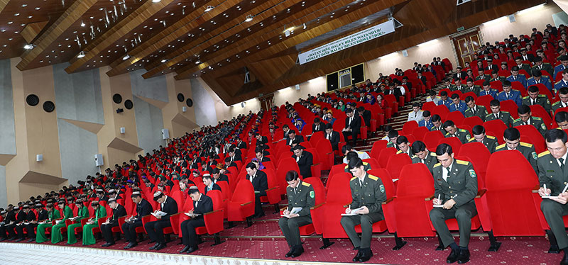 Further, the floor was given to draftee of the Economic Administration of military and law enforcement bodies at the State Border Service of Turkmenistan B.Kadyrov. Addressing the President of Turkmenistan, Supreme Commander-in-Chief of the Armed Forces of the country and delegates of the congress on behalf of defenders of our fatherland, the speaker underlined the significance of the present forum held in the year “Epoch of people with Arkadag” on Day of Knowledge and Student Youth and on the eve of the 31st anniversary of sacred independence of our fatherland.