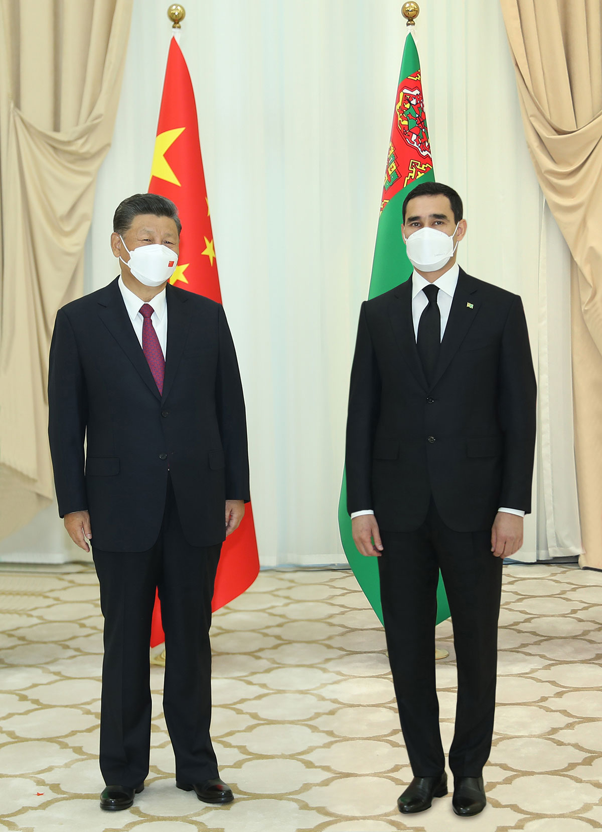 Today, President Serdar Berdimuhamedov, who arrived in Samarkand to participate as an honoured guest in the Shanghai Cooperation Organization Summit, met with Chairman of the People’s Republic of China Xi Jinping.