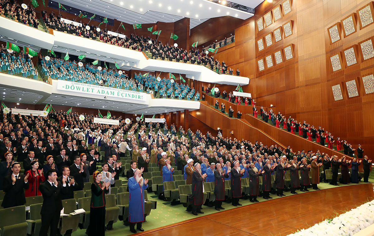 There comes a solemn moment: the head of Turkmenistan declares Dovlet Maslakhaty open.