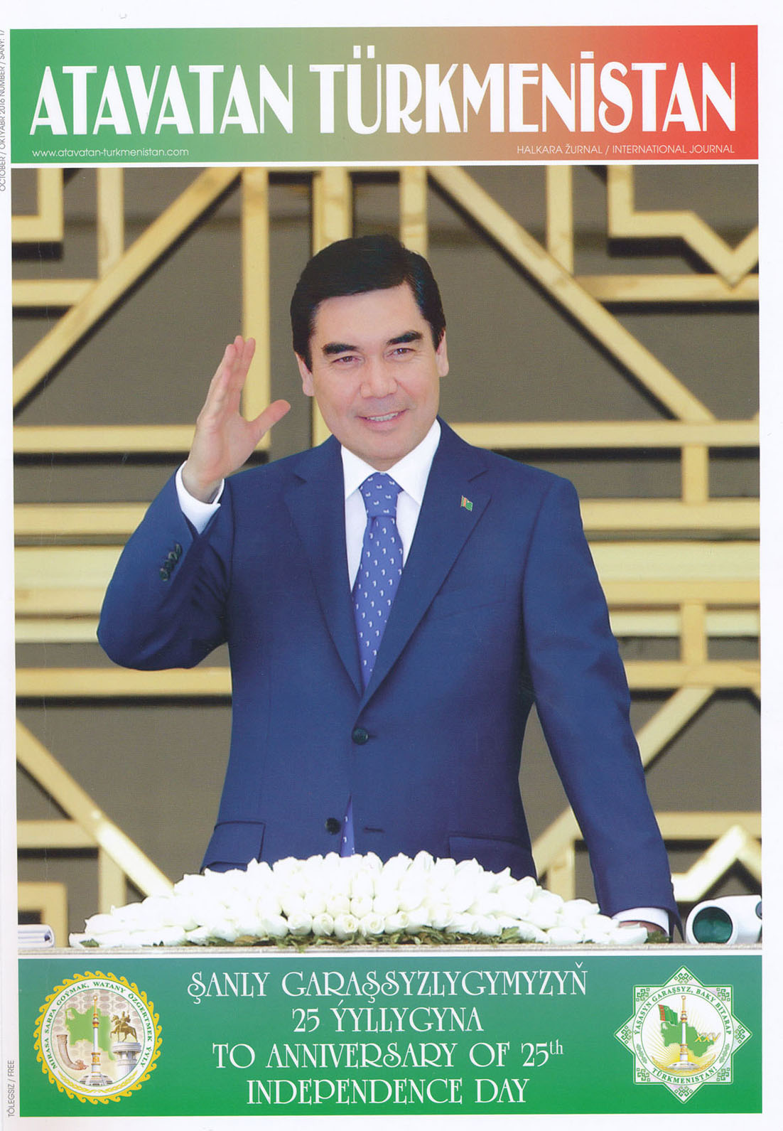 A special issue of the international analytical magazine “Atavatan Türkmenistan” is published, devoted to the 25th anniversary of Turkmenistan’s independence. In the light of the forthcoming Sustainable Transport System Global Conference to be held in Ashgabat, a series of publications was released devoted to the practical steps taken by Turkmenistan on the development of the modern transport-transit logistics infrastructure, communications and telecommunication systems. So, the first article authored by the International Road Transport Union (IRU) President Christian Labrot is devoted to the key stages of the productive bilateral cooperation. Much attention in the material is paid to the implementation of joint projects aimed at encouraging the regional trade and transport development, expansion of transit through the territory of our country, thereby uniting the transport links of Asia, Europe and the Near East. Minister of Transport, Maritime and Communications of Turkey Ahmet Arslan’s publication is dedicated to the fruitful Turkmen-Turkish cooperation in the transport sphere. As noted in the publication, the largest Turkish companies invest in the country’s socio-economic progress through participation in large-scale redevelopment programs and major infrastructure projects implemented in Turkmenistan under the leadership of President Gurbanguly Berdymuhamedov. Speaking of the prospects of bilateral cooperation, Ahmet Arslan confirms Turkey’s efforts to expand the transport-transit cooperation with Turkmen partners. The issue includes also the article authored by the founder of the international analytical magazine “Atavatan Türkmenistan”, Adem Kul, devoted to 25th anniversary of our state’s independence. Another material describes in detail the national healthcare system’s progress. The author focuses on the achievements of the sector making reference to the concrete examples. The talk is about the already-launched and under-construction new medical facilities built in the capital, all velayats of the country, even in the far-distant villages which meet the requirements of time and are equipped with modern facilities. A series of articles is devoted to the readiness measures to the 5th Asian Indoor and Martial Arts Games to be held in the Turkmen capital in 2017 in accordance with the Olympic Asian Council’s decision. A separate article is dedicated to awarding President Gurbanguly Berdymuhamedov the highest-class Gold Medal of the Asian Sports Press Union of the International Sports Press Association for his outstanding contribution to the advancement of the national sports movement and international cooperation in that field. In an interview to “Atavatan Türkmenistan” magazine, President of the Asian Sports Press Union Mohammed Qasim has underlined that the head of Turkmenistan is the first awardee conferred on the Medal. One of the publications highlights the achievements in the power engineering industry, which is among the key sectors of Turkmen economy notable for its high development rates and export capacities. Readers will also read the material about the growing role of the private sector in the national economy. Given the foreign readers’ keen interest to the culture of our country, the issue includes the articles about the country’s historical monuments, about the sources and ways of the Turkmen language development. The celebratory issue is colorfully illustrated. An electronic version of the magazine is also available for domestic and foreign readers on the website www.atavatan-turkmenistan.com.