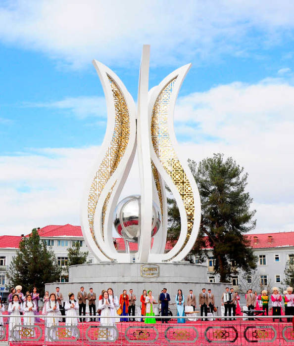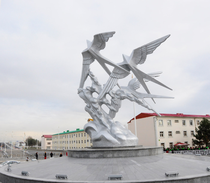 On December 10, a grand ceremony of opening new monuments took place in the capital of the country with the participation of the heads of city khyakimlik, representatives of public organisations, numerous townsmen, representatives of young generation of Turkmen citizens. Erected on the circular road junctions of the reconstructed highways – the sections of N. Andalyp and Magtymguly avenues - these massive sculptural compositions became a celebratory gift to the citizens of Ashgabat on the eve of Neutrality Day. At the circle, in the place of crossing of N. Andalyp and «10 yil Abadanchylyk» avenues, a monumental-decorative tracery tower «Zemin» was built. As if weaved from a shining metal lace, a globe-like structure at the top of the tower symbolises our planet. The globe is supported by a column «embracing» it above, like keeping in the palms. And the whole sculpture reminds a huge flower blossoming out towards the sun. Other composition - «Ebedilik», decorated the crossroad of the N. Andalyp Avenue and Yunus Emre Street. The artistic concept of the composition uncovers the idea of continuity of life. In its abstract forms one can guess both a life wheel and a symbol of infinity in the figure-of-eight structure; the dynamics of continuous movement and the tendency of the human thought to penetrate through centuries and spaces. The following surprising sculpture is «Jebislik». It is located on the circle at the junction of the N. Andalyp and A. Niyazov Avenues. The artistic concept of the composition uncovers the idea how the numerous streams blend together to form a single powerful flow capable to overcome any obstacles on its way. But predominating in the composition is the torch - as an emblem of freedom, fire, light, life, spirit and reason, and also as a sign of continuity of traditions. On the circular interchange of N. Andalyp and Galkynysh Avenues, there is one more original plastic composition - «Ösüsh». Its graceful (despite monumentalism) «string» stylistics embodies the growth and development, revival and updating, reverence and simultaneously the energy of life. At the junction of the N. Andalyp and Magtymguly Avenues, the picture was enlivened by the huge sculpture representing swallows - «Erkanalyk», which symbolises free flight of spirit, thought, and nobleness of sincere impulses. One more monument one can see at the circle of Magtymguly and Aba Annaev Avenues - «Chemen». Simplicity and laconism of its form contain in itself a big polysemy, after all, a bouquet – an attribute of celebration, we connect the best wishes with it - happiness, love, abundance, health, successes. And it is also a symbol of association of hearts, expression of sincere feelings, gratitude and admiration. The participants of the ceremonies of launching new sculptural compositions also walked along the redeveloped streets of Ashgabat, who – by foot, and who by double-decked buses specially assigned for this case and decorated with the balloons, emblems of the Year of Honouring the Heritage, Transformation of the Motherland and the 21st anniversary of neutrality of Turkmenistan. From the windows of buses, the fine view of well arranged highways opens. That same day, in Ashgabat, the two multi-level parking lots (240-car and 400-car capacities) were launched. Constructed in compliance with of world standards, they are designed to increase the conformability of parking lots for the ever-growing number of private motor cars.