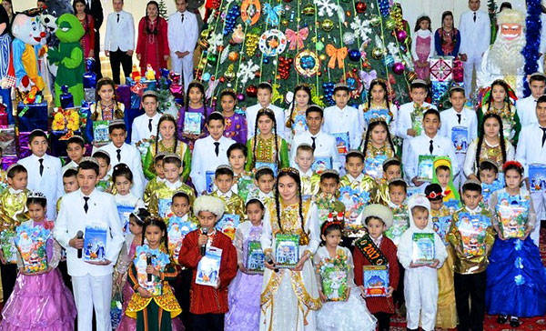 Traditionally, the «Döwletliler köşgi» orphanage hold celebrations on the threshold of the New Year, where the children were presented with the gift on behalf of President Gurbanguly Berdimuhamedov. Big concert, which was held in neat decorated hall with flashing by garlands and lights New Year tree surrounded by the fosters and tutors of the orphanage as well as numerous guests who wished to share the joy with the kids and popular singers and circus artists, was the adorning of the event. The fosters of «Döwletliler köşgi» took most active part in prestigious competitions and international festivals. Many of the children are the prize-winners of popular art shows, which are held in our country and abroad. There is the “Joshgun” dance band among them, which performed at the concert together with their friends from “Shatlyk” ensemble from the capital Palace of Children and Youth. The children in carnival dresses danced around under the tunes of famous popular singers. The number of circus artists from “Shovhun” band with trained monkey and parrot aroused true rapture of the kids.