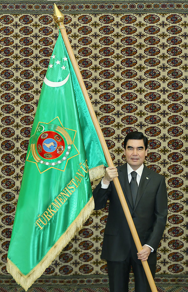 President of Turkmenistan, Supreme Commander of the Armed Forces of the country Army General Gurbanguly Berdimuhamedov presented the Colours to new army divisions formed for improvement of the structure of the Armed Forces of Turkmenistan. The Decree of establishment of the Colours of military divisions of the Armed Forces of Turkmenistan was signed on January 9, what was informed during extended session of the State Security Council. At the same day, Central House of Officers and Military Institute of the Ministry of Defence hosted Colours Award ceremonies. The commanders and personnel of the military divisions, which received the Colours according to the Decree of the President of Turkmenistan, Supreme Commander of the Armed Forces of the country Army General Gurbanguly Berdimuhamedov, as well as officers, ratings, cadets and students of military academies of the Ministry of Defence, gathered there. It was symbolical due to the coming 25th anniversary of the establishment of the Armed Forces of Turkmenistan and Motherland Defender Day. This holiday was instituted by the Decree of the President of Turkmenistan in 2008 and annually observed of January 27.