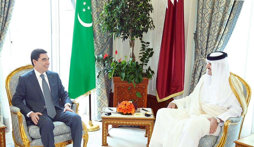 Turkmen – Qatar high-level negotiations were held in Doha. Emir of the State of Qatar Tamim Bin Hamad Al-Thani and President Gurbanguly Berdimuhamedov held extended meeting with participation of official delegation of two countries and then had one-on-one conversation. Current high summit proves the intent of the sides to bring strategic and long-term partnership to new level. Turkmenistan expresses great interest in studying of Qatar experience as a country achieved considerable development in economy, science and education, energy and sport spheres. Large opportunities for development of trade and economic cooperation and diversification of trade turnover were noted. Our countries also have huge hydrocarbon reserves what calls for the partnership in fuel and energy complex. Having shared the visions on broad spectrum of subjects of Turkmen – Qatar partnership, President Gurbanguly Berdimuhamedov and Emir Sheikh Tamim Bin Hamad Al Thani specified the approaches to implementation of efficient cooperation in different spheres. After negotiations, bilateral documents signing ceremony took place. There is Memorandum of Understanding on Cooperation in Training of Diplomats between the Institute of International Relations of the Ministry of Foreign Affairs of Turkmenistan and the Institute of Diplomacy of the State of Qatar among the documents. Memoranda of Understanding on development of cooperation in energy and cooperation in standardization, metrology, certification and accreditation were adopted on intergovernmental level. The State National Service Turkmenhowayollary and the Department of Civil Aviation of the State of Qatar signed Memorandum of Understanding. Another document is related environment subject. This is Memorandum of Understanding on cooperation in biodiversity and natural protection.