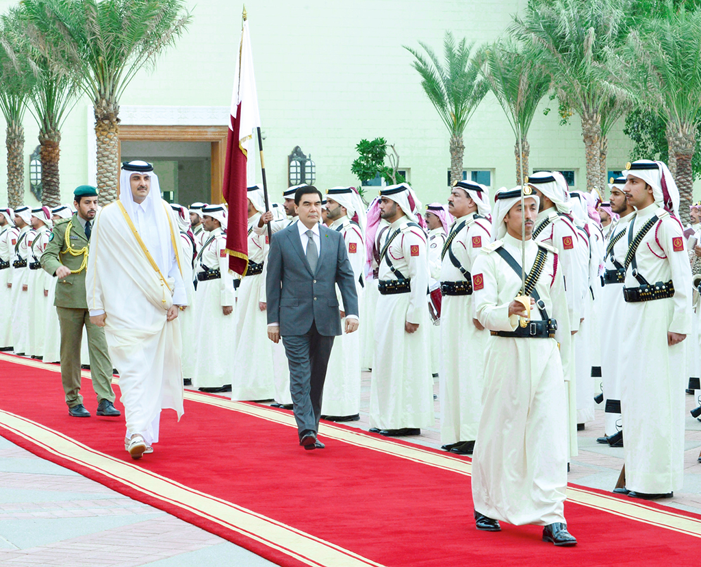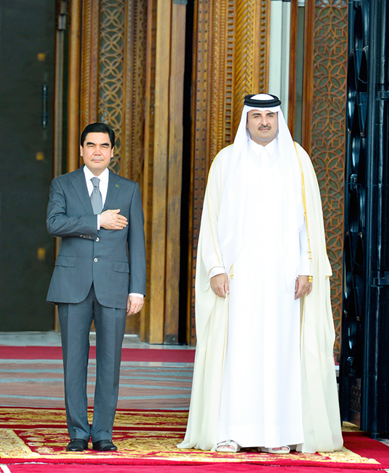 President of Turkmenistan Gurbanguly Berdimuhamedov left on official visit to the State of Qatar. The Head of the State was seen off by the officials at the capital international airport. Turkmenistan pays great attention to the development of cooperation with Qatar both in bilateral format and under dynamically developing dialog with the Middle East countries. Diplomatic relations between two states were established in 1996. The first visit of President Gurbanguly Berdimuhamedov to this friendly Arab country was on October 11 – 12, 2010. On March 7, 2016, there were a talks between the head of Turkmenistan and Emir of the State of Qatar Sheikh Tamim Bin Hamad Al-Thani. Current meeting of the Heads of two friendly states is a vivid evidence of their endeavour to bring the partnership to quality new level and to attach business and constructive character to it. Today, both Turkmenistan and Qatar have huge resources for expansion of beneficial partnership, mutual interest in rally of bilateral cooperation in different spheres. These interests are not only in economic sphere although it is more obvious. This is vividly indicated by the outcomes of Turkmen – Qatar business forum on march 14 in Doha. Giving the priority to trade and economic cooperation, both countries try to establish cultural and humanitarian relations as well. It was evidenced by the Days of Turkmenistan Culture in Qatar before the visit. Having flown from Ashgabat International Airport, President’s airplane landed after two hours in Hamad International Airport, Doha decorated by the State Flags of two countries. At the gangway, where the guard of honour was lined up, the President of Turkmenistan was met by the officials of host country. On behalf of the Emir of the State of Qatar they cordially welcomed high-rank Turkmen guest. After, the motorcade of the President of Turkmenistan went to the Palace of the Emir of Qatar. Emir of the State of Qatar Sheikh Tamim Bin Hamad Al-Thani cordially welcomed the Head of Turkmenistan at the square in front of the Palace. Having shaken hands, the Leaders of the two states headed to special venue, where the official ceremony of welcoming the high-rank Turkmen guest took place The national anthems of the two states were performed. Having received the report of the Commander of the Guard of Honour, the Heads of Turkmenistan and Qatar walked along the Guard of Honour and paid tribute to the State Flag of Qatar Sheikh Tamim Bin Hamad Al-Thani and President Gurbanguly Berdimuhamedov went to the palace, where the members of the official delegation of Qatar were introduced to the Turkmen guest. The Emir of Qatar welcomed the members of Turkmenistan delegation Upon completion of the official ceremony, the Heads of the States went to Large Meeting Hall to hold talks with the participation of the delegations of the two countries. Cordially greeting the President of Turkmenistan and members of Turkmen government delegation, Emir Tamim Bin Hamad Al-Thani expressed the gratitude to Gurbanguly Berdimuhamedov for accepted invitation to visit Qatar and highlighted that current visit of the head of Turkmenistan is considered in Qatar as important step in consolidation of friendship of two fraternal peoples and new history of interstate dialog. International authority of Turkmenistan growth fast and it is mainly favoured by the policy of peace and neutrality, good neighbourhood and broad international cooperation, which are successfully realized by President Gurbanguly Berdimuhamedov, Tamim Bin Hamad Al-Thani said, having highlighted that Arab business circles watch with great attention the achievement of Turkmenistan and express large interest in development of benefical relations. The Emir of Qatar expressed his admire with grandiose changes and reforms in our country, which success is made for by the solidarity of Turkmen people around their national leader. The historical relations of our countries go far to the ancient times and historical, cultural and spiritual community of our countries are reliable guarantee of intensification of relations of friendship, trust and understanding. During negotiations, the energy sphere, industry and trade, transport and communication, investments as well as banking activity, where Qatar has considerable experience, were called among the most priority and perspective areas. Qatar expressed an interest in realization of joint projects indifferent branches of economy including in transit, transport, oil and gas spheres. Qatar is one of the world’s leaders in liquefied natural gas export. The experience of Qatar in this sphere will be quite useful for our dynamically developing national economy. It was mentioned that rapidly globalizing gas market requires establishment of cooperation between largest gas exporters. President Gurbanguly Berdimuhamedov expressed the gratitude to Sheikh Tamim Bin Hamad AL Thani for the hospitality and wished peace, prosperity and happiness to people of the friendly country. Turkmen Leader said that this visit, having a government status, is considered as an event, which would give strong impulse to development of friendly relations between Turkmenistan and Qatar, the Head of the State expressed the confidence that relations between our countries would expand and gain new quality content. The concept of the presidency of Turkmenistan in the Conference of the Energy Charter in 2017, under which Ashgabat would host regular session of this organization in November, was also mentioned in the negotiations. Great attention in the development of relations between Turkmenistan and Qatar is paid to trade and economic cooperation. For their further development, the Head of the State spoke for increase of trade turnover and services volumes and establishment direct contacts between economic partners, business entities between two states. Trade exhibitions and business forums, specialized fairs of goods produced in Turkmenistan and Qatar, o