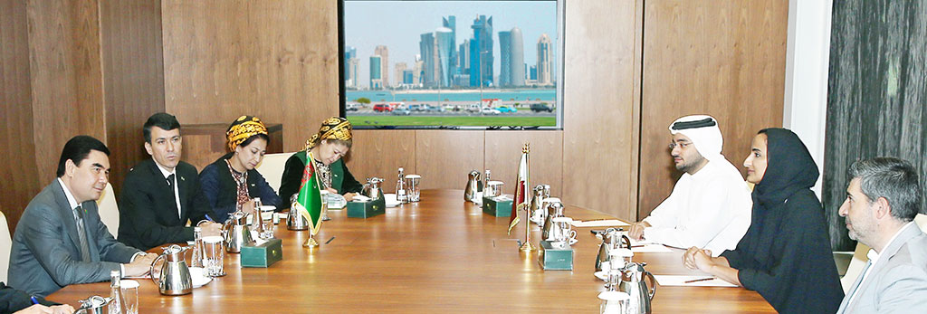 President of Turkmenistan Gurbanguly Berdimuhamedov held the meeting with Head Qatar’s Education, Science and Social Development Fund (Qatar Foundation) Sheikha Hind Bint Hamad Al-Thani. Greeting Turkmen Leader, the guest congratulated President Gurbanguly Berdimuhamedov with large success of his visit to Qatar and expressed the delight for the opportunity to discuss the subjects of bilateral cooperation in personal conversation. There was detailed exchange of the opinion on opportunities of the partnership with Qatar Foundation that has number of large projects related with the investments to “human potential” and formation of innovative model of education. President Gurbanguly Berdimuhamedov highlighted that Turkmenistan pays great attention to this direction and is willing to discuss joint programmes and projects for the development of national education system, in particular for studying Arabic language. The head of the State also said that Turkmenistan is interested in Qatar’s experience in foundation of branches of famous international universities in the country. Large potential and prospects for fruitful scientific work, conducting of joint scientific studies in different areas, establishment of the contacts between the Academy of Sciences of Turkmenistan and National Scientific Fund of Qatar as well as between technology Centre of the Academy of Sciences and Qatar Technology Park, between the Institute of Manuscripts of the Academy and the Arabic Islamic Heritage Library were noted during the conversation. President Gurbanguly Berdimuhamedov spoke for expansion of the relations between medical centres of our country and Qatar Institute of Biomedical Studies and Sidra Medical Research Centre. President Gurbanguly Berdimuhamedov invited Qatar Foundation delegation to visit Turkmenistan for detailed discussion of perspective directions and specific projects of joint activity.