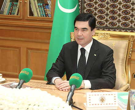 President of Turkmenistan Gurbanguly Berdimuhamedov conducted a videoconference meeting with the Deputy Chairmen of the Cabinet of Ministers, the hyakims of Mary and Lebap Velayat and the heads of the ministries and departments concerned. The priority tasks of implementing the social and economic development strategy, the measures taken to celebrate the remarkable dates in the national calendar, the draft documents and other important issues of the domestic policy were discussed during the meeting. The President congratulated the meeting participants and the Turkmen people on the beginning of the holy month of Oraza, which embodies the lofty principles of unity and humanism. Emphasizing that good deeds are done during the holy month of Oraza, President Gurbanguly Berdimuhamedov signed the Resolution on the construction of a mosque in Lebap Velayat. The Turkmen leader noted that the mosque building should represent the harmonious combination of the modern achievements in architecture and traditions of the national art of building. The Turkmen leader said that that he would make the working trips to Mary and Lebap Velayat to monitor the on-going work in the regions to improve social and living conditions of citizens. The hyakims of Mary and Lebap Velayat reported on the on-going work in their regions to achieve the objectives of the national rural development programme and the measures taken in preparation for the working visits of the Turkmen leader to the regions. The Deputy Chairmen of the Cabinet of Ministers reported on the measures taken to implement the oil and gas industry development programme, the Mary Velayat social and development programmes and organize the celebrations in honour of the 20th anniversary of the Saglyk State Programme. The information on the implementation of the programme of activities in preparation for the summer school holidays to ensure that children would spend their holidays usefully was presented. The report on the measures taken in preparation for the opening ceremony of a children’s recreational centre in Serdarabat in Lebap Velayat was presented. The information on the progress in developing the project for the construction and capacity of a power plant in Mary Velayat was presented. The report on the measures taken in preparation for the festive events in Mary Velayat, the Week of Culture in Lebap Velayat and the festivities in honour of Day of Cultural and Art Workers, widely celebrated in our country, was presented. The information on the presentation of the books by the Turkmen leader Turkmen Medeniyeti and Ile Dowlet Geler Bolsa was presented. The report on the work carried out by the Union of Industrialists and Entrepreneurs in the framework of the national social and economic development programmes was presented. The report on the programme aimed at accelerating the pace of work in the transport and communications sectors, strengthening the material and technical basis of these sectors and fulfilling the tasks was presented. The report on the current situation in the industrial sector focused on the measures taken in preparation for the opening ceremonies of industrial facilities, located in Garlyk village in Lebap Velayat. The information on the measures taken to develop industrial infrastructure and improve social and living conditions in the eastern region of the country was presented. The fire safety programme was presented to the Turkmen leader for consideration. The report on the measures taken to modernize social infrastructure, transport and engineering systems, communications and power supply networks and communal facilities in the etraps of Ashgabat in compliance with the work plans was presented. The report on the progress in seasonal agricultural activities on cotton plantations and other fields and the measures taken to complete the harvest campaign in a timely and proper manner was presented. The information on the preparations for the opening ceremonies of the ginneries in Sakarchaga Etrap in Mary Velayat and Karabekaul Etrap in Lebap Velayat was presented. In conclusion, the Turkmen leader focused on the need to concert efforts of the relevant agencies to prepare for and ensure the high level of organisation of the upcoming large-scale events.