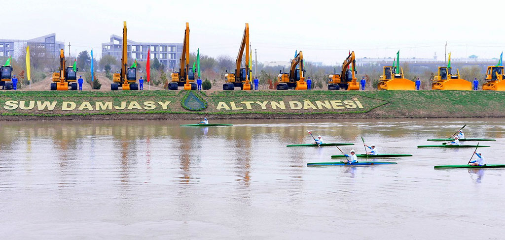 The national holiday, “Drop of water – grain of gold” was celebrated in Turkmenistan. Main festivities were held in the park located by the bank of the Karakum River in the northern part of the capital. Numerous participants and guests were welcomed with traditional national delights – fresh bread, chorek; pastry – pishme, chapady, kulche; sweets and fruits. Attendees comprised of the Government officials; senior parliamentary officers; heads of ministries and sectoral agencies; heads of diplomatic missions and representations accredited to Turkmenistan; representatives of non-government organizations and the media; senior citizens, veterans and best workers of water management industry; university lecturers and students; residents and guests of the capital. An open-air exhibition of agricultural products was organized with participation of various units of the Ministry of Agriculture and Water Resources and other agencies. Exposition of regional structures of water industry included stands displaying methods of biological treatment of water reservoirs; mock-up models of hydraulic engineering installations; advanced melioration systems; examples of resource-saving equipment such as sprinkling systems and drip irrigation designated to solve the hyperhydration problem in farmlands, and consequently prevent the water table rise and soil salinization. Visitors of the current exhibition could also see mini-reservoirs with fingerlings of various types of fish to be later released into open waters. Main objective of such fish-farming is biological de-siltation of rivers and removal of water reed. Traditions of irrigated farming in Turkmenistan date back to great antiquity. Guests attending the celebration could find confirmation to that through discovering the indigenous methods of irrigation with the water wheel and witnessing how our ancestors used camels to transport precious water. Today we use powerful pump stations and extended water supply networks to transport water. Functioning mock-up models of karez, irrigation tunnels, attracted many visitors. Thanks to their skills, savvy and hard work, our ancestors developed unique methods to produce water. And karez, kilometers-long underground tunnels for collecting and storing drinking water, are one of them. Turkmenistan’s rich flora and fauna were also represented here, as well as examples of heavy-duty machinery produced and regularly supplied by leading global manufacturers to improve the technical park for water management. Exposition of works by sculptors, artists and jewelers, organized by the riverbank, was of particular interest for visitors. Our people’s traditionally responsible approach to water and modern water management facilities were reflected by the young generation of successors of masters of decorative, folk and fine arts in their picturesque paintings, drawings, carved woodwork, ceramics, tapestries, carpets and jewelry. Traditional dishes of Turkmen cuisine were cordially and heartily offered to the guests at magnificently decorated yurts located nearby. Folk singers, bagshy, played melodies of searing intensity that intertwined with the beauty of nature. Performances of best routines by folk groups from the country’s provinces added to the national spirit to the celebration. Exhibition show was presented by kayakers and canoeists. National games; traditional wrestling, goresh; chess and checkers competitions helped create a festive, joyous mood. It was symbolic that the participants planted trees in the park, therefore contributing to the expansion of the greenbelt along the Karakum River. This celebration united people of different professions and occupations – irrigation and hydraulic engineers; miraps and machine operators; technicians and builders, the best of whom were traditionally honored on this day during the solemn ceremony of presenting awards to the best workers from the country’s regions and capital. They were presented valuable gifts from the President Gurbanguly Berdimuhamedov. The celebration was concluded with the grand gala of masters of arts. Performers harmoniously intertwined their music and songs with national ritual songs and dances celebrating the water. On the occasion of the national holiday, “Drop of water – grain of gold”, colorful performances and concerts; sports competitions and public celebrations were organized throughout the country, by banks of rivers, canals and water reservoirs; by fountains in parks and squares of towns and villages.