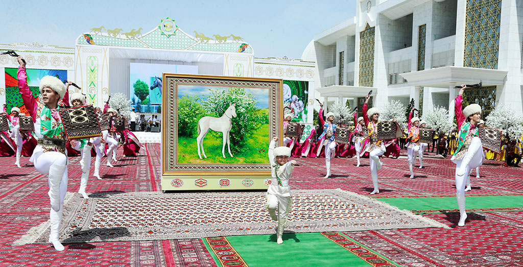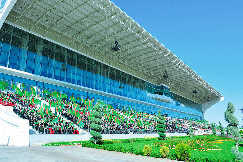 The International Akhal-Teke Equestrian Complex became the center of the main solemn event of the Turkmen Horse Day. This morning thousands of Turkmen citizens and numerous guests of the country gathered in the International Akhal-Teke Equestrian Complex, which turned into a huge demonstration site, where the national culture and traditions of the Turkmen people are represented in all diversity. On the territory of the complex there was a large exhibition of arts and crafts, paintings and other works, where the main characters are the incomparable Akhalteke horses. This grand opening reflected the carefully preserved heritage and dynamic modernity, richness and inexhaustibility of the creative imagination of the people. Among those present were deputy chairmen of the Cabinet of Ministers, heads of the Mejlis, military and law enforcement agencies, ministries and departments, public organizations, hakim of the Akhal velayat and the city of Ashgabat, heads of diplomatic missions and missions accredited in our country, elders, youth, as well as representatives of domestic and Foreign media and participants in international forums on horse breeding. All participants with great enthusiasm greeted President of Turkmenistan Gurbanguly Berdimuhamedov who arrived to the International Akhal-Teke Equestrian Center. Having greeted the audience, the nation's leader inspected the exposition presented by the country's velayats. Each region is distinguished by its ethnographic specifics, the characteristic features of creative schools, the technique of masters, the work of which could be observed immediately. Folklore collectives and folk musicians performed nearby, songs were played, dances and ritual sketches were performed. The color of the oriental bazaar was emphasized by wonderful carpets and silk fabrics, amazing embroidery and samples of national clothes, women's jewelry and elegant horse harness glittering with silver and gems, painted ceramics, traditional household items, musical instruments, souvenirs, etc. The exhibition was completed by the winners of the contest on the artistic embodiment of the beauty of Akhalteke horses. Beautiful horses are engraved on picturesque and carpet canvases, in sculptures, jewelry and photographs in various forms. Expressive portraits and sculptures combined reality and symbolism, the delightful grace of a horse with its power. The demonstration program was carried out by the athletes demonstrating their skills, presenting the sports included in the program of the Asian Games-2017, and many others. Artists of folklore and dance ensembles gathered before the main building of the International Akhal-Teke Equestrian Complex with a festive musical dedication. President Gurbanguly Berdimuhamedov passes to the audience stands. The host announces the beginning of the festive races - the most prestigious competitions of the season. The signal sounds and zealous horses jerked from their stands, quickly gaining speed, riveted by the enthusiastic attention of the audience stands. The races, which have ancient traditions in Turkmenistan, nowadays, thanks to the selfless activity of the leader of the nation Gurbanguly Berdimuhamedov, began to enjoy unprecedented popularity. A spectacular show, followed with enthusiasm by crowded stands, hundreds of camera lenses, including foreign reporters, who came to us from different parts of the world, lasted more than two hours. In total, seven races for different distances took place today, in each of which 12 horses took part, demonstrating their best sporting qualities. Then the ceremony of presenting valuable prizes on behalf of President Gurbanguly Berdimuhamedov to the winners of the festive competitions - today's races, as well as the marathon and jumping competitions held this week – has taken place. The distance of the marathon was 60 kilometers. Turkmen horses demonstrated not only high-speed qualities, but also sports restraint. The best result was shown by the horse Melepel from the Akhal-Teke Horse Complex. Jockey M.Dujdanov. The victorious horse received a prize of 20 thousand dollars and a Cup. Now in our country there is another grandiose action, initiated by the Head of the Turkmen State, a 500-day horse marathon in all regions of the country, which started with the beginning of the countdown to the Asian Games-2017. As for competitions in jumping, held at the arena of the International Akhalteke equestrian complex, the winner was the Altynhan mount from the Akhal-Teke equestrian complex of the President of Turkmenistan. Jockey R. Khodzhanepesov was awarded the Cup and the prize of 20 thousand dollars. After the awarding of the winners in the marathon and competitions in jumping, the presentation of prizes, played in today's festive races, took place. During his stay at the International Akhal-Teke Equestrian Center, the President of Turkmenistan also held a number of meetings with representatives of foreign delegations and honorary guests of the festivities in honor of the Turkmen horse. *** On Sunday, solemn events on the occasion of the Turkmen Horse's Day were held across the country. Their panorama includes concerts, exhibitions, musical and poetic evenings, solemn meetings and folk festivals, as well as honoring of horse breeders of the country.