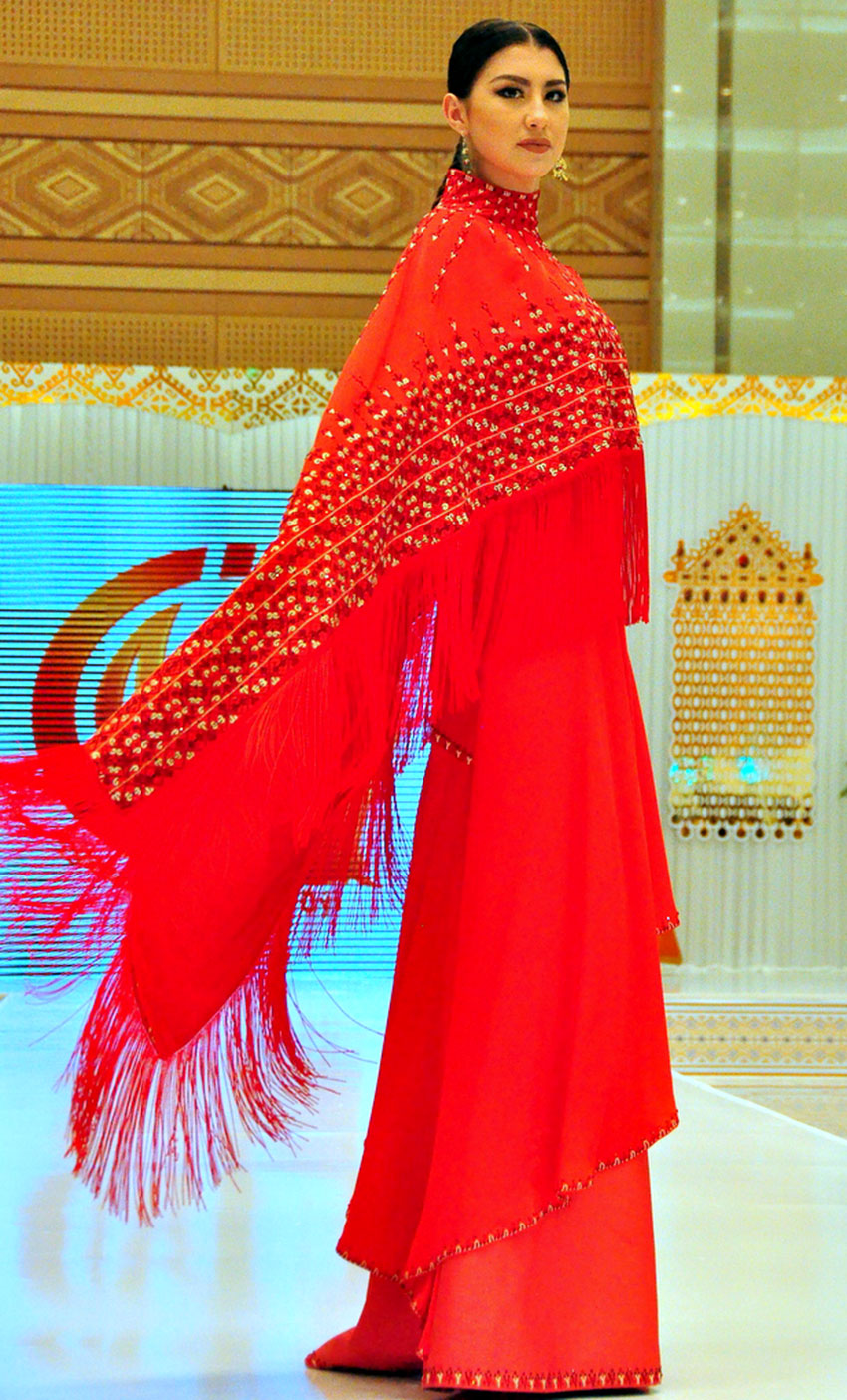 Exposition hall of the Trade and Industrial Chamber opened International exhibition “Turkmen Textile 2017” timed to the Day of Textile industry Worker traditionally observed on the first Sunday in June. Large-scale economic review, which is to reflect considerable achievements of domestic light industry, is at the same time is a good ground for demonstration of modern technologies and innovations, fashion trends in the world textile industry. The current exhibition is held in the year when the country is going to host V Asian Indoor and Martial Arts Games. Bright textile vernisage is an excellent opportunity for wide familiarization on the world community with large preparation work for 2017 Asian Games that became dominating idea and meaning of the decoration of exhibition displays. Artistic bands of the capital met with song and dance performances the guests of the capital who arrived in Ashgabat from numerous European and Asian countries to participate in prestigious review. The delegations are composed of leaders and specialists of large producing enterprises and trading companies from Russia, Italy, Switzerland, Germany, Belgium, Turkey, China, United Arab Emirates, Ukraine and CIS countries. There are our traditional partners among the participants of the exhibition, which have large experience of productive cooperation in construction of textile facilities like Turkish companies «Kotam Enterpraýzes», «Engin Group», «Norsel International», «Gap Inşaat». Manufacturers and suppliers of high technology equipment and materials in cotton ginning, weaving and colouring of fabrics like «Truеtzschler», «Saurer Schlafhorst», «Volkmann» (germany), «Solway», «Рicanol» and «WandeWiele» (Belgium), «Uster», «Rieter AG», «Bezema» (Switzerand), Italian group of companies «Marzoli», «Savio» and others annually present new improved developments and constructive solutions taking into account special features of work and demands of Turkmen enterprises. The prestige of textile forum in Ashgabat is proven by participation of the famous masters of fashion industry. There is Russian couturier with world name Valentin Yudashkin, who pleased Turkmen public with demonstration of new collections for few times, as well as young fashion designers from Belarus Yulia Latushkina and Lyudmila Labkova. Members of the Government, leaders of ministries and departments, non-governmental organizations, heads of diplomatic missions accredited in our country and foreign businessmen working in Turkmenistan, representatives of mass media took part in the opening ceremony of the exhibition. Best workers of the industry were among honoured guests. Large exposition presented the variety of different production. Brightly and originally decorated stands displayed all sections of textile production from manufacturing of certified cotton thread and silk until making of ready-made items which meet the tendencies of modern design, aesthetics and fashionable solutions. The displays of large enterprises of the country were full of samples of thread and fabrics like satin, staple, velvet, jeans items and knitted garments, men shirts and home textile. Bedding, bathroom and kitchen textile sets, terry items as well as hosiery, medical wool and cosmetic wool pads were presented in gift packages. Special attention was paid to silk production represented by large colour palette of 2keteni” fabrics, finest silk kerchiefs “oyme2 and velvet shawls, traditional women dress decorated with national hand-made embroidery. Foreign guests expressed keen interest in work of the masters on special weaving loom “tara” making “keteni” by ancient traditions known from the times of the great Silk Road. Different items with the images, symbols and mascots of V Asian Indoor and Martial Arts Games are among new products. Domestic textile manufacturers work on important and responsible task – the development and tailoring of the suits for National Olympic Committee, standard-bearers as well as sets of uniform for volunteers and technical staff. These items are made of natural cotton and mixed fabrics produced by Ruhabat Textile Complex, at largest branch enterprises Kipchak and Gyokdepe textile complexes, capital “Ashgabadtextil” and “Turkmenbashytextil” complexes, Jeans complex as well as “Ahal” and “Bahar” garment factories. Finest single-colour velvet shawls as well as staple scarfs with print of 2017 Asian Games symbols are among the presented accessories. Special place of the exposition is allocated to this subject. Large specialised showroom presented the suits for Turkmen sportsmen in every of 21 sports in V Asian Games. Demonstration of new collection of stylish dresses presented by Turkmen designers and foreign guests turned into bright parade of unique works of high fashion art. Today, the production of designers of Ashgabat Model house is known beyond the country’s borders. Bright show of the models presenting refined dresses of chiffon, taffeta, velvet and “ketene” on prestigious world’s podiums rise sincere admiration. Special accent of this season was made on original children items for sports and leisure made of knitted fabric. Fashion designer Lyudmila Labkova presented for the first time on Ashgabat stage her new collection of knitted dresses and suits “Summer 2018” made of Belarusian flax and fabrics mixed with Turkmen cotton. Decorated with hand-made embroidery and sustained in single style dresses for mothers and daughters gave rise to loud applause of the public. Beautiful evening multilayer dresses of silk and chiffon decorated with glass beads, bugles and Swarovski crystals of “Latushkina” brand continued fashion show of Belarusian designers. The show was completed by the collection of “Valentin Yudashkin Fashion House” that demonstrated the refinement and delicacy of style of famous master. Having thanked rapturous spectators for the hospitality, fam