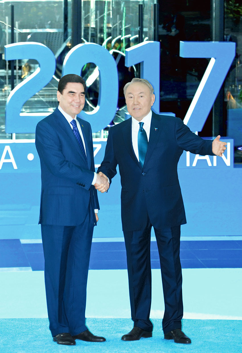 President of Turkmenistan Gurbanguly Berdymuhamedov became an honored guest of the opening ceremony of the International Specialized Exhibition ""Astana EXPO-2017"" within the framework of his working visit to Kazakhstan. The exhibition will be held under the motto ""Energy of the Future"" at this global review, where is presented the National Pavilion of our country as well and will be demonstrated ideas and solutions on renewable energy sources and implementation of the principles of the ""green economy"" . President Nursultan Nazarbayev has greeted President Gurbanguly Berdymuhamedov in the Palace of Independence in Astana. The Head of the Republic of Kazakhstan stressed that he was very pleased to welcome the head of Turkmenistan in Astana again, confirming the aspiration to develop friendly relations between the two countries. Having noted with satisfaction that the relations between the countries are gaining an increasingly dynamic character, President Gurbanguly Berdymuhamedov noted the productivity of the visit to Kazakhstan in April this year. It has given new impetus to relations in energy, transport, trade and economic cooperation, important documents were signed on expanding the partnership, the Turkmen leader said. The heads of Turkmenistan and the Republic of Kazakhstan discussed the state and prospects of interstate cooperation; spoke in favor of building up trade and economic cooperation, stimulating close business, humanitarian, scientific ties, to which the International Specialized Exhibition Astana EXPO-2017 should also promote. President Gurbanguly Berdymuhamedov invited President Nursultan Nazarbayev to come to Ashgabat for the opening of the 5th Asian Indoor and Martial Arts Games. President Nursultan Nazarbayev expressed gratitude for the invitation to the Asian Games-2017, noting that under the leadership of President Gurbanguly Berdymuhamedov, the Turkmen people had achieved impressive successes. He also said that the interaction of the countries had acquired new dynamics today, the trade turnover had increased, including thanks the transnational railway ""North-South"". After the meeting, the head of Turkmenistan and other honorary guests of Astana proceeded to the territory of the exhibition complex. Here the Kazakhstan leader Nursultan Nazarbayev has presented the central element of the exhibition complex, the architectural symbol ""EXPO-2017"" - the pavilion ""Nur-Alem"". The uniqueness of its design is that it is the first building in the world in the form of a ""full sphere"", its diameter is 80 meters, and its height is 100 meters. On the 1st floor there is a pavilion of Kazakhstan, where the exposition dedicated to the history, culture, traditions, sights of Kazakhstan and its achievements is presented. Having reviewed the pavilion of Kazakhstan, the participants of the celebration went to the Main Square in front of it, where official photographing took place. Then the motorcade with the heads of state drove through the exhibition grounds towards the Congress Center, where the Opening Ceremony of EXPO-2017 took place. From the stage, the President of the Bureau International des Expositions Steen Christensen addressed the audience with a welcoming speech. After then the President of Kazakhstan Nursultan Nazarbayev spoke. ""Over the years, tremendous preparatory work was carried out to hold this review,"" he said, and thanked everyone who participated in this complex process by launching the International Specialized Exhibition “EXPO-2017 in Astana”. The evening continued with a concert program and a multimedia show with a laser projection on the sphere ""Nur-Alem"". The final of the performance was a festive fireworks display over the territory of the exhibition complex.