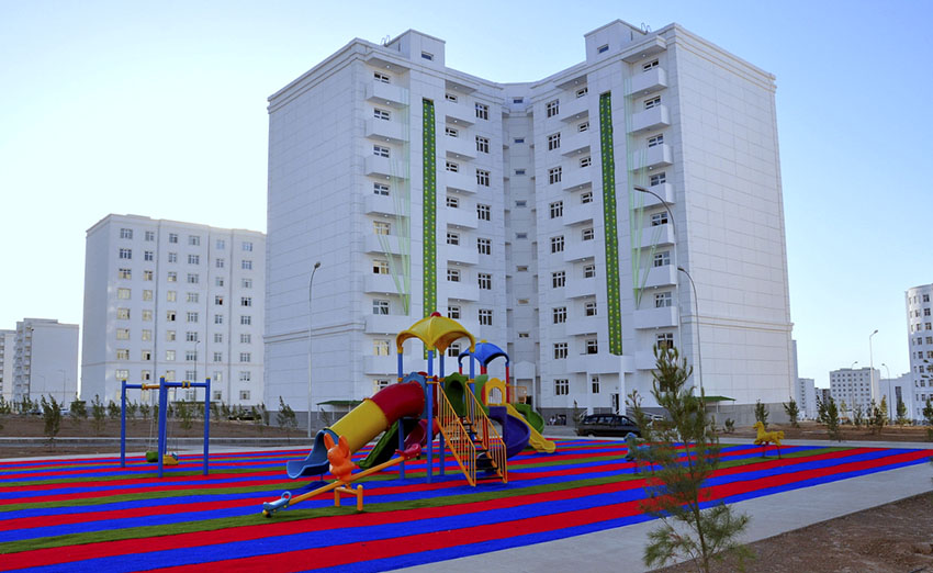More than 680 Ashgabat families celebrated new house-warming parties in sixteen nine-store buildings of Parahat 7/4 living estate. Six 54-apartment and ten 36-apartment houses of improved series were put into exploitation there. Ashgabat city administration is the client of large living estate. New solid high-rise buildings are distinguished by technological innovations, original architecture, comfortable zoning of living space, increased size and ceiling height of the apartments. Construction of new living complex was entrusted to domestic entrepreneurs. Construction companies, the members of the Union of Industrialists and Entrepreneurs of Turkmenistan build sixty solid living houses on the territory of new estate. Social infrastructure will be supplemented by several kindergartens, three comprehensive schools and medical centre. Besides, land plots for construction of trade, public catering and public services enterprises are reserved there. Multilevel parking for 400 vehicles opened at the intersection of Azadi and M. Tachmuradov streets. Passenger lifts are installed inside the building for the comfort of vehicle owners. The parking is equipped with sensors and information displays showing free parking lots. Besides, all levels are equipped with surveillance cameras and fire alarms. The ground floor is occupied by the car wash. Picturesque recreation zone is expanded on the territory of 630 hectares in the south-west of the capital where 15th phase of elite houses is built. New park is made on the hill area from where magnificent view on white-marble Ashgabat and Kopetdag Mountains is opened. Beautiful architectural ensemble including Arkadag monument, Yildyz Hotel, the centre of wedding ceremonies Happiness Palace, multifunctional stadium Ashgabat and hotel for 2200 guests is located nearby. The objective of new park zone, bounded by Bitarap Turkmenistan, Hero of Turkmenistan Atamyrat Niyazov avenues and Oguzkhan, Gyorogly and Bikrova streets, is to combine public and living zones into single ensemble and to become an important element of recreation infrastructure and to promote the formation of ecological comfort zone in the concept of the development of Ashgabat. Taking into account the uniqueness of the landscape, where the park is located, modern architectural, planning and design solutions were used there. Natural green plantations were kept around the whole area of parking complex, decorative and exotic trees, shrubs adapted to our climate conditions were planted as well as modern irrigation, and rainwater drainage systems were made. Comfortable zoning, bright landscape compositions in combination with small architectural forms, pedestrian and cycling passes, cosy pavilions and benches, original elements of artificial lighting supports the atmosphere of harmonic rest. Undoubtedly, new park will be the favourite place of numerous capital residents.