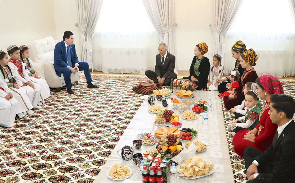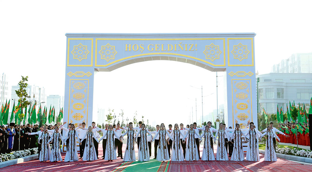 The opening of new social facilities built under the 15th phase of urban development of the main city of country are continued in the capital with participation of President Gurbanguly Berdimuhamedov. New comfortable district with beautiful white-marble buildings and all necessary modern infrastructure has been erected in the south-west part of Ashgabat. Having harmonically merged into beautiful architectural ensemble of Ashgabat, new living estate is a real embodiment of progressive socially oriented policy pursued by President Gurbanguly Berdimuhamedov under slogan “The State for an Individual!”. Recently, living construction of high international levels has been widely expanded in the country. Creation of favourable conditions for life of Turkmenistan citizens is the key objective of innovative concept of the capital development as well as integrated reforms expanded in all regions of the country initiated by the Leader of the Nation. Celebration and high emotional mood reigned from early morning at the place of events. The Chairperson of the Mejlis, members of the Government, leaders of military and law enforcement agencies, ministries and departments, the Hyakim of Ashgabat have gathered there. There are Turkmenistan Ambassadors to foreign countries, heads of diplomatic corps accredited in our country, representative of foreign business circles as well as heads of non-governmental organizations and mass media, numerous Ashgabat citizens among the participants of the ceremony. Everybody greeted President of Turkmenistan Gurbanguly Berdimuhamedov. Young Turkmenistan citizens and art masters prepared their presents for new house warming parties. The culmination came and the President of Turkmenistan together with children, who greeted the Head of the State with the poems, went to symbolical Arch and under loud applauses of the participants cut traditional ribbon. Together with new buildings opened on the day before, architectural ensemble of the 15th phase of urban development of Ashgabat includes twelve 12-storey houses with 72 apartments and six 12-storey houses with 48 apartments of improved planning and comfort, 11 shopping centres as well as school for 600 student and kindergarten for 160 children. All relative engineering and communication, road and transport infrastructure has been stipulated, new roads with necessary technical systems have been laid. The territory next to new facilities are completely planned and planted with trees and shrubs. Great attention was paid to the functionality of new buildings, ecological and aesthetic aspects. Location and provision of recreation zones, sport grounds and parks was well considered. Young tenants will enjoy spending time at children playgrounds provided with all necessary attributes for outdoor games. The sport grounds are designed for supporters of active life style. There are also premises for social events. New park has also appeared in this part of the city. Modern technologies of landscape design have been used during its construction. It would be worth mentioning special original feature of new house complexes in the capital – they all have their own name on top of the building along with numeration. Head of the State Gurbanguly Berdimuhamedov accompanied by the group of children started his walk from multi-storey living houses “Eziz Diyar” and “Ajayip Eyyam”. There were music and songs at every new house, bright artist, musical, song and dance performances were expanded. There was carpet exhibition, the exposition of consummate by beauty and refinement items of national decorative and applied art as well as small sculpture and ceramics resembling the samples made by our ancestors, the talented masters of the past epochs, located on the way of Head of the State Gurbanguly Berdimuhamedov accompanied by little participants of the event. Young Turkmen sportsmen prepared demonstration performances on different sports on occasion of remarkable event. Young painters set their easels near new houses and tried to capture this historical day, the best moments of celebration, beautiful new facilities as well as architectural masterpieces of Ashgabat that became famous and listed in the Guinness World Records Book. The spirit of large Turkmen celebration with its bright decorations, original traditions and customs, hospitality and generous treats is everywhere. Along his way, President Gurbanguly Berdimuhamedov was cordially greeted by the participants of the ceremony and numerous new tenants, for which this day is marked is such good and unforgettable event. The guests are treated with traditional flavoured and fluffy toy-pishme; the congratulations were sounded everywhere. New 72- and 48-apartment 12-storey houses have all conditions for comfort living. They have 3- and 4-rooms apartments with all kind of amenities including spacious living rooms, cosy bedrooms, kitchens equipped with modern hardware, balconies and auxiliary rooms. High ceilings are special feature of such apartments. Each building has underground parking and all necessary life-supporting systems. Continuing looking around new living estate, the Head of the State went to new three-storey shopping centre “Şypaly” built by “Myradym” private company. The President was welcomed by young sales girl who introduced him the variety of goods. The ground floor of the building is occupied by the supermarket offering wide range of food and household items, which main part is new goods. This is dairy and meat production, bakery including dietary and confectionary items, baby food, cereals. Tomato paste, mayonnaise, juices, soft drinks and tea, ice-cream, etc. There are also big coice of fruits and vegetables offered to the customer. Looking around the shopping centre, the Head of the State expressed his interest in the variety, type and quality of products by domestic manufacturers as well as in the conditions made for service and comfort of the customers. All