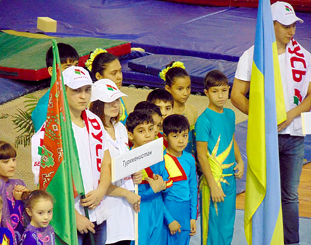 Turkmen athletes have won two silver medals at the X “Kinder Surprise” International Acrobatics Tournament among juniors under 16, held in the city of Mogilev (Republic of Belarus). Our compatriots took second place on the medal podium in group events of two and four. The group of four young Turkmen athletes: Ahmed Nazargulyev, Gairat Hojakov, Karlen Grigoryan and Amirjan Arutunyan were second only to representatives of the host team. Notably, in the final, our acrobats performed as well as the Belarusian team. However, in the close contest judges gave preference to the home team. Thus, the pupils of Honored Coach of Turkmenistan Irina Kruglikova conceded less than a point to their opponents, having won silver medals. In the pair events, a duet from Ashgabat Hezret Shirgulyev and Vladimir Kostyaev achieved success. This time, pupils of Chief Coach of the national acrobatics team of Turkmenistan Natalia Rejepova managed to take the lead over Belarusian athletes, who took third place. Unfortunately, our team lost less than a point to the team of the Republic of Moldova in the final. The Turkmen duet had already won medals at international junior tournaments before. Among them are gold medals which they won in Switzerland in 2011. The result of a Turkmen duet – Guncha Kakaeva and Jeren Iolieva is worth mentioning as well. They completed their performance only one step away from medals, taking fourth place. Winners and prize-winners of the European championship, including strong acrobats from Germany and other countries contested in this group. Our athletes performed well, competing with renowned opponents, having taken the lead over many of them, including the host team.